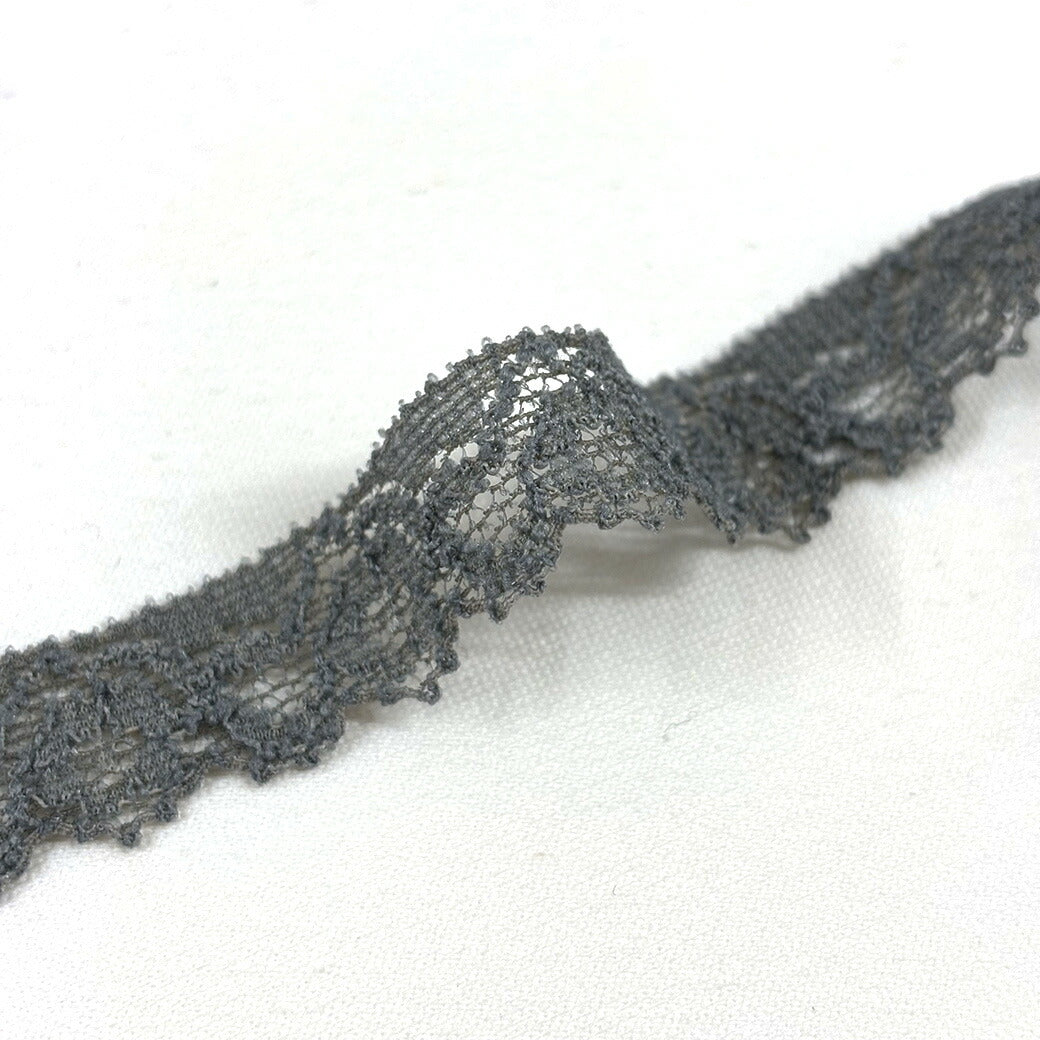 リボン【 細ストレッチレース グレー 】レースリボン ストレッチレース 刺繍リボン 花柄 花柄刺繍 レース刺繍 刺繍テープ ハンドメイド資材 可愛い 手芸用テープ リボンテープ 洋裁 ハンドメイド 手芸用 パーツ 布雑貨 副材 手芸副材 フリル Textile World TOA