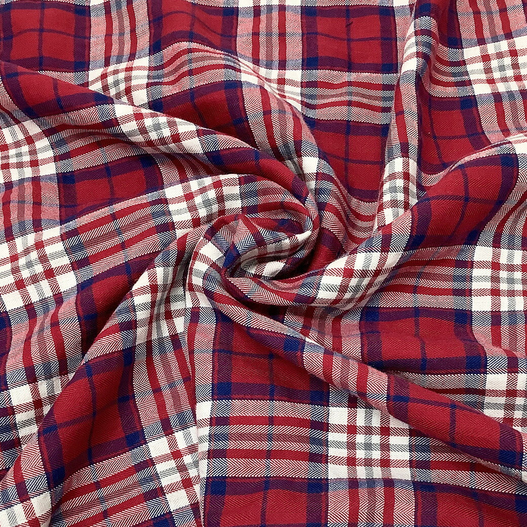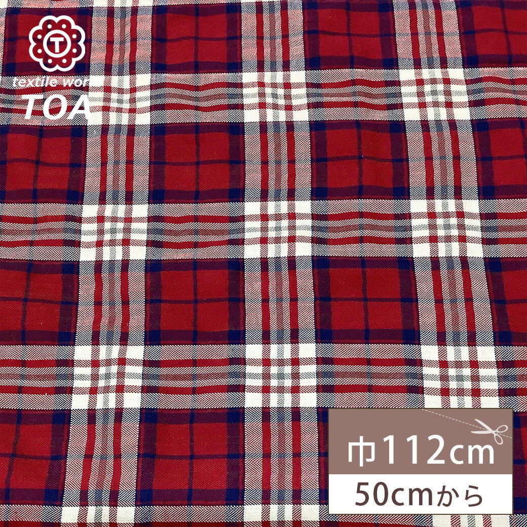 生地 【 綿サッカーチェック柄 】 チェック柄 タータンチェック サッカー生地 綿生地 コットン 綿100% ワンピース ブラウス シャツ チュニック パジャマ 涼しい ポコポコ ボコボコ 赤 スコットランド 英国 洋服 小物 雑貨 手芸 手作り ハンドメイド Textile World TOA