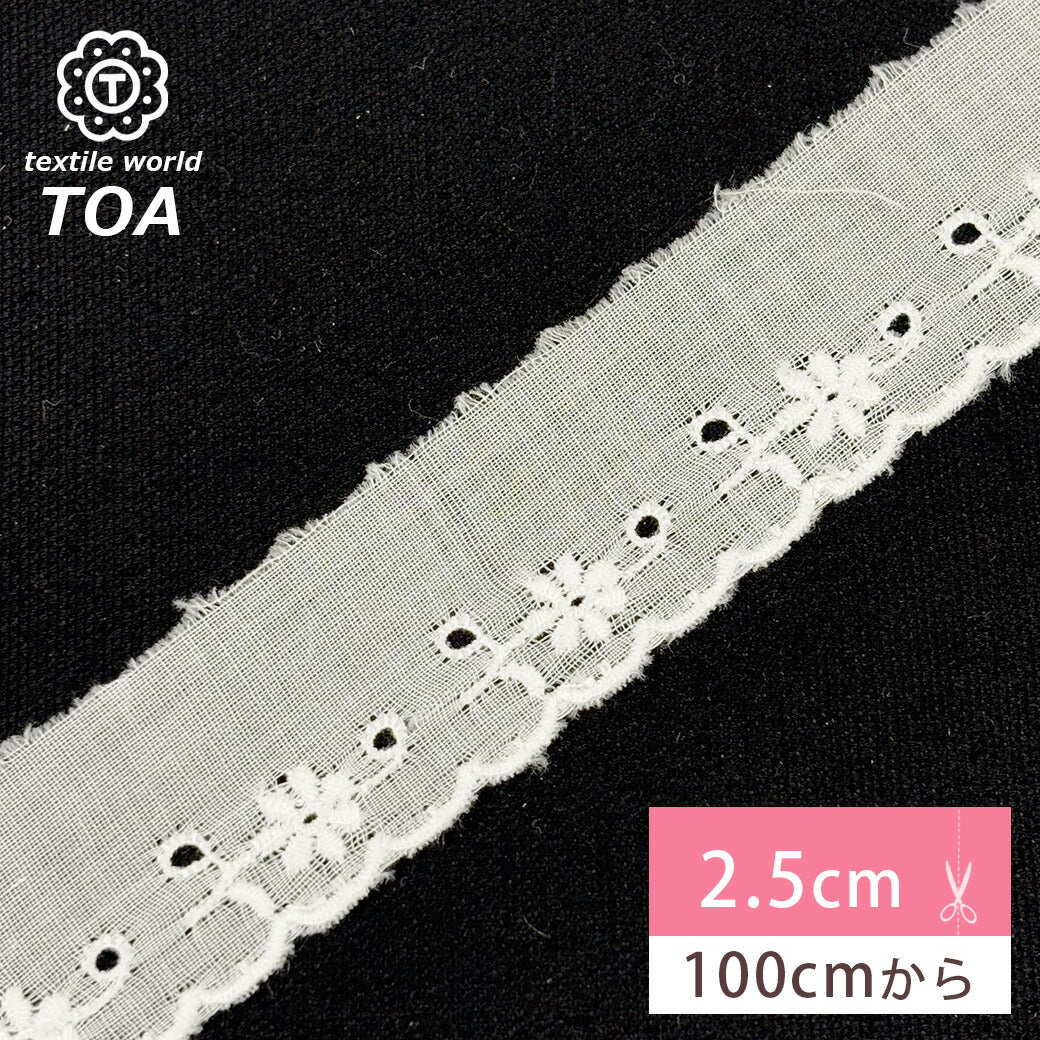 リボン【 綿レース 139 白 】レースリボン 刺繍リボン 花柄 花柄刺繍 レース刺繍 刺繍テープ 綿レース ハンドメイド資材 可愛い 手芸用テープ リボンテープ 洋裁 ハンドメイド 手芸用 パーツ 布雑貨 副材 手芸副材 フリル Textile World TOA
