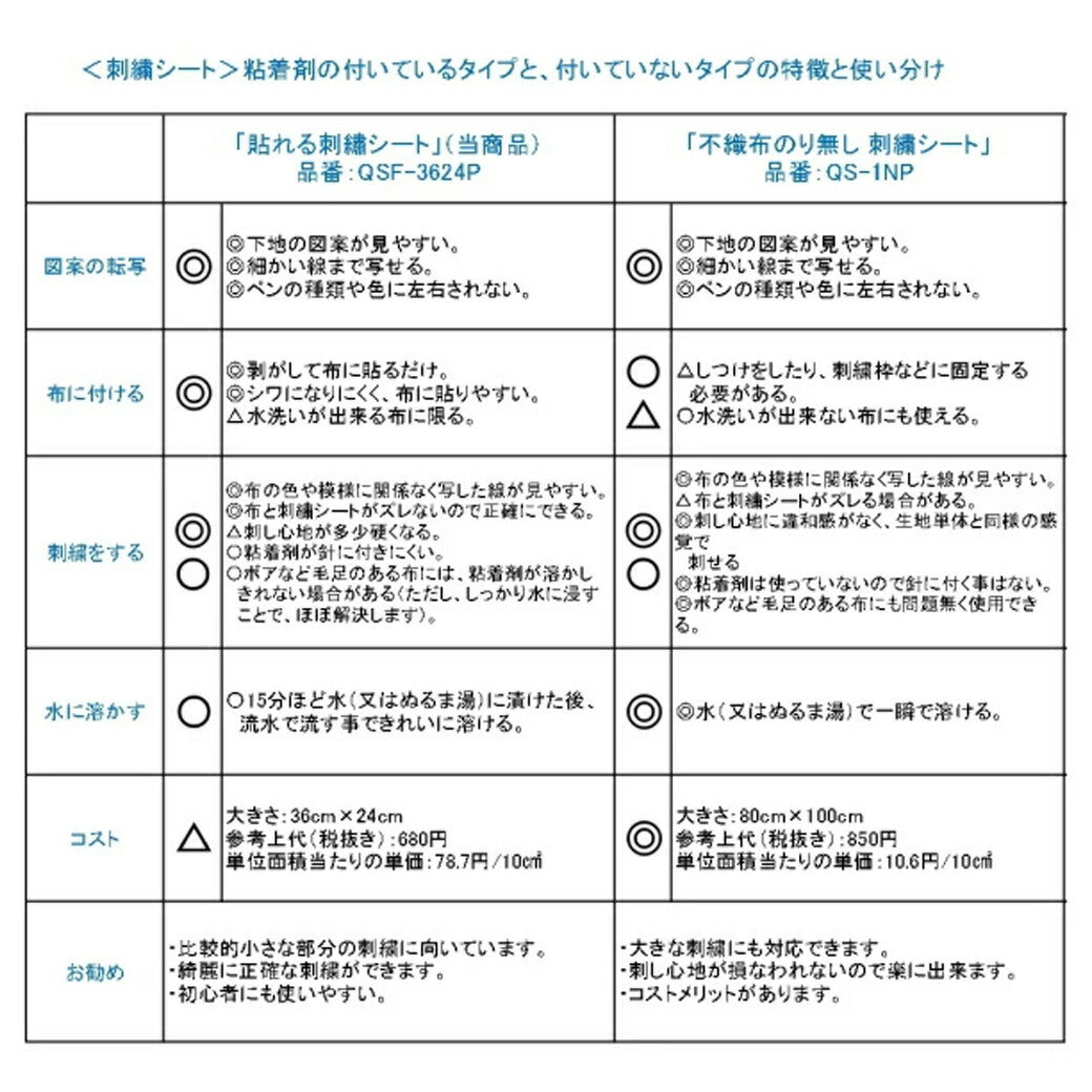 【 オルヌマン 貼れる刺繍シート 36cm×24cm QSF-3624P 】 キルターズシークレット 貼れる刺繍シート 図案転写シール 不織布タイプ 刺しゅう 刺繍 オルヌマン下書き 刺繍 転写 刺繍図案 写す 水で溶ける レ