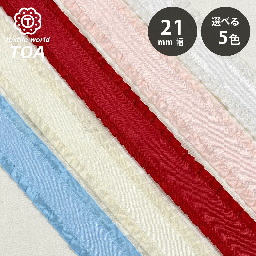 リボン 【 フリルリボン 21mm 5色 】 フリルリボン サテンリボン リボン サテン 手芸リボン ポリエルテルリボン コスプレ 仮装 衣装 アレンジ お遊戯会 発表会 2.1cm ダブルフリル ヘアアクセ ヘアリボン 衣装 手芸用品 ラッピング ラッピング資材 Textile world TOA