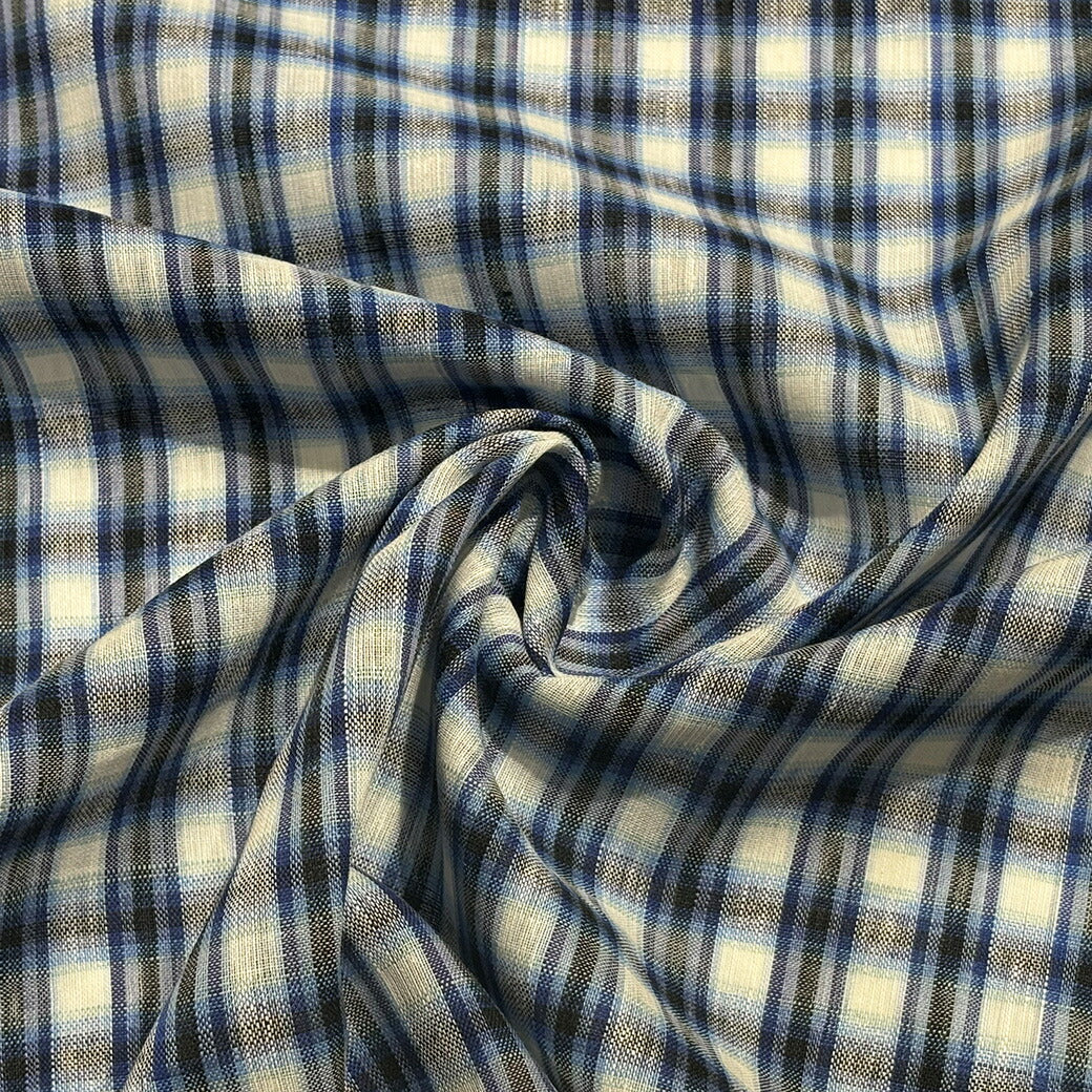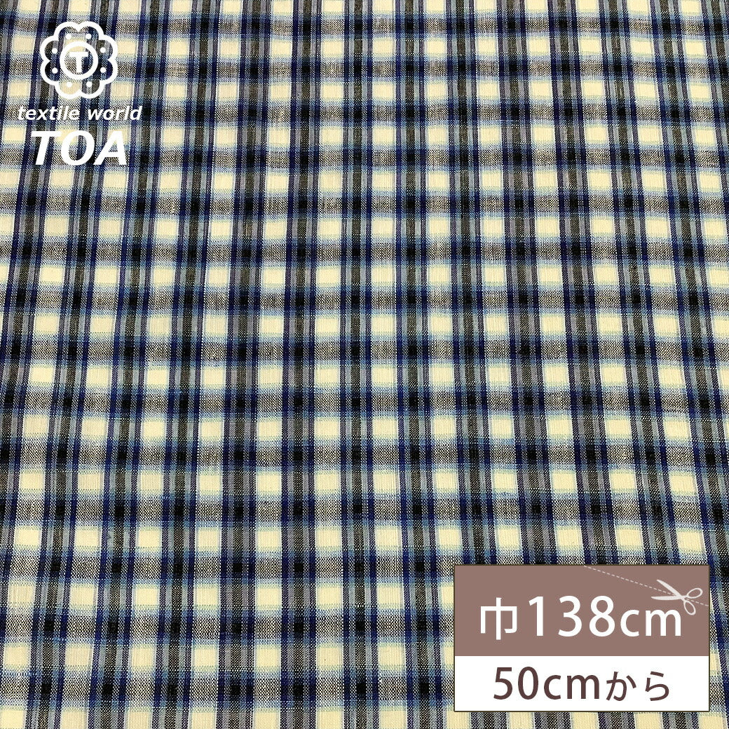 生地 【 綿麻チェック ブルー 】 リネン生地 綿麻生地 コットンリネン リネン タータンチェック チェック柄 タータン チェック柄生地 麻 チェックプリント 格子 ブラウス シャツ スカート 子ども服 カーテン ステテコ パンツ 夏 ポーチ インテリア Textile World TOA