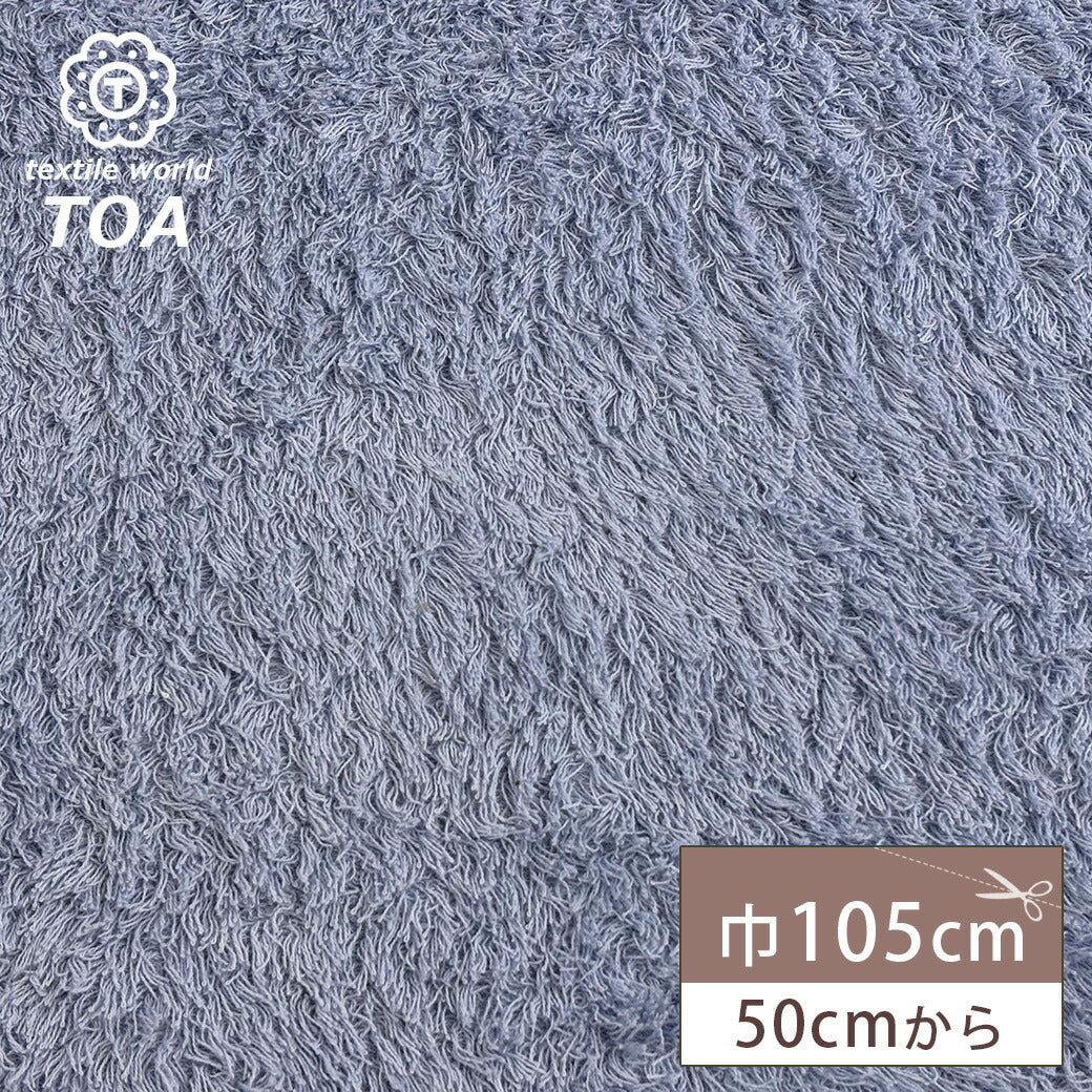 生地【 コットンフェイクファー サックス 】フェイクファー素材 パイル生地 タオル生地 綿100% コットン 長毛 毛長 ハンドメイド ソーイング パイル 生地 綿パイル サウナハット タオル 厚手 タオル地 服地 無地 手芸