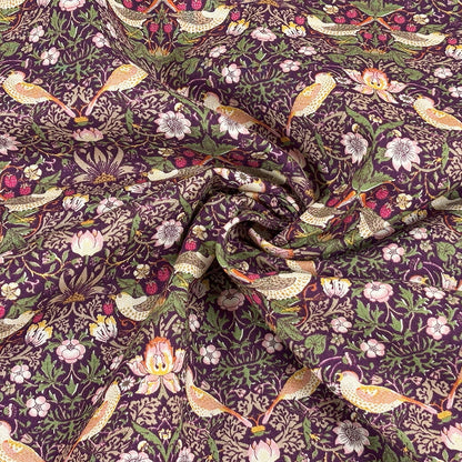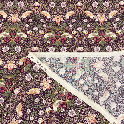 生地 【 V&A Fabric Collection いちご泥棒 ワイン 】 シーチング 110cm巾 コットン 綿100% 薄手
