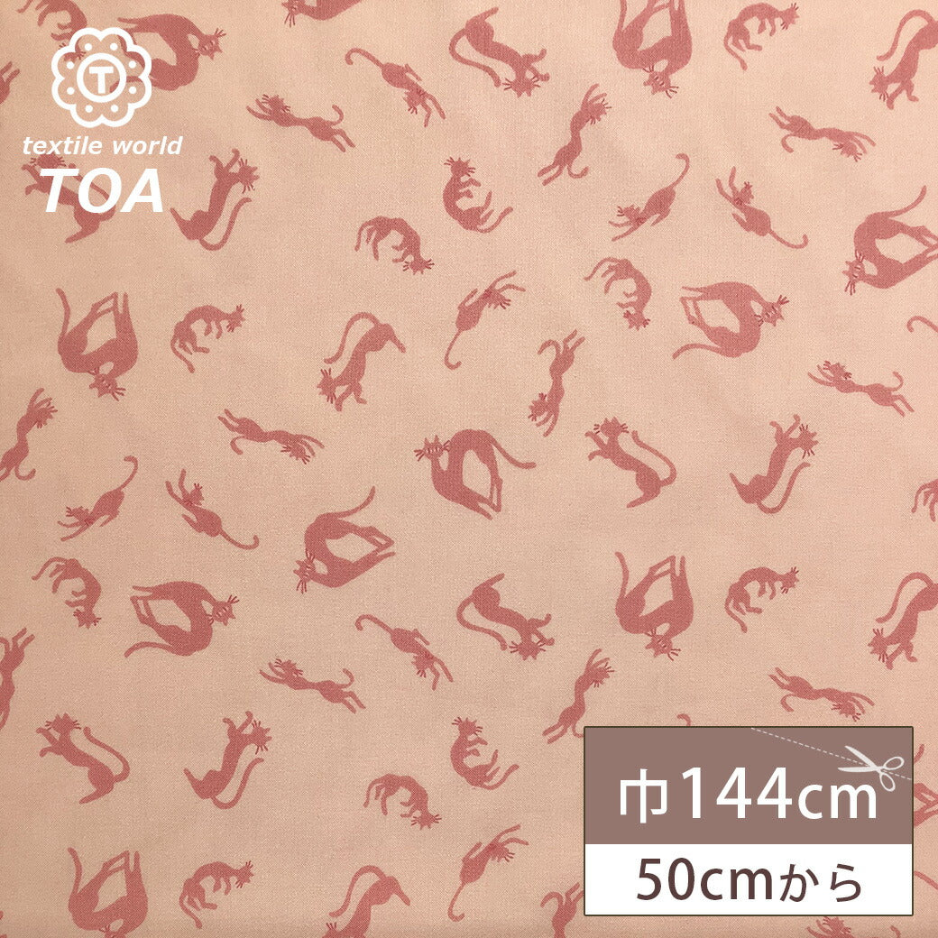 生地 【 ブロード 猫 シルエット ピンク 】 猫柄生地 ブロード生地 猫 猫柄 ネコ にゃんこ ねこ ねこ柄 ネコ柄 ニャンコ 動物柄 アニマル柄 生き物 コットンプリント 綿プリント 綿生地 ねこちゃん 可愛い 猫の日 カーテン インテリア kawaii cat neko Textile World Toa