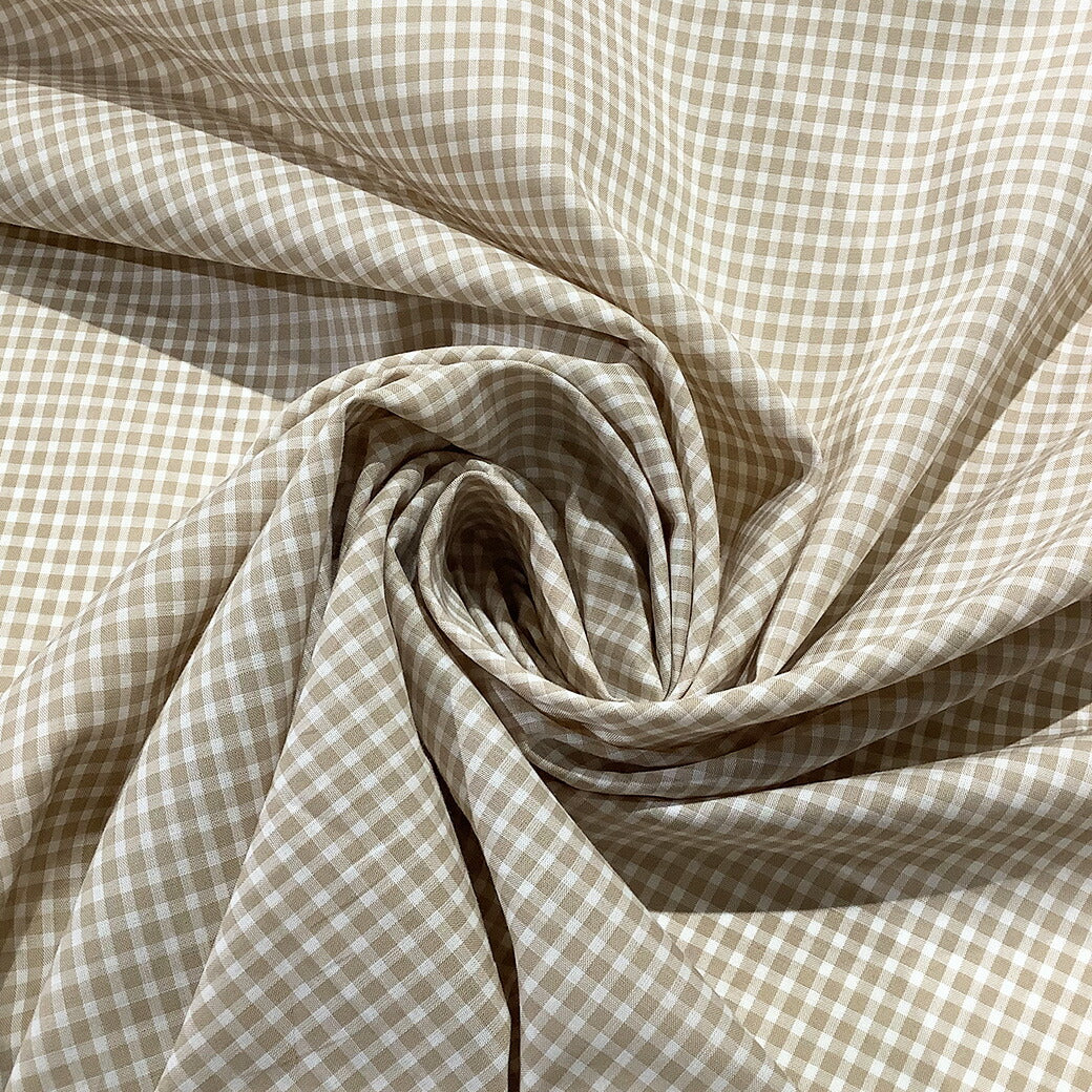 生地 【 ローン先染めチェック ベージュ 】 ローン ローン生地 先染めチェック チェック柄 ギンガムチェック 小チェック 幾何学 幾何学模様 カジュアル ネクタイ スカーフ ブラウス シャツ ハンカチ 巾着 薄手 薄い生地 春夏 春生地 シンプル 可愛い 茶色 Textile World TOA