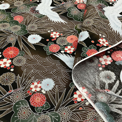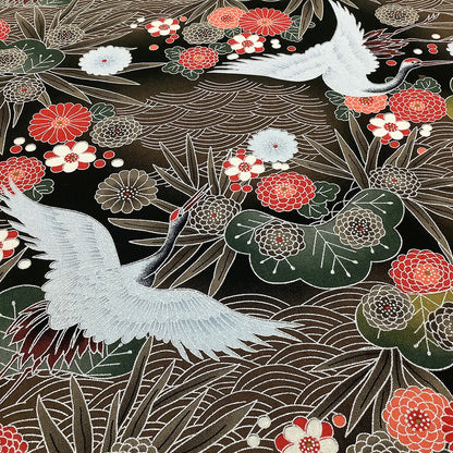 和柄開花プリント ≪鶴柄≫