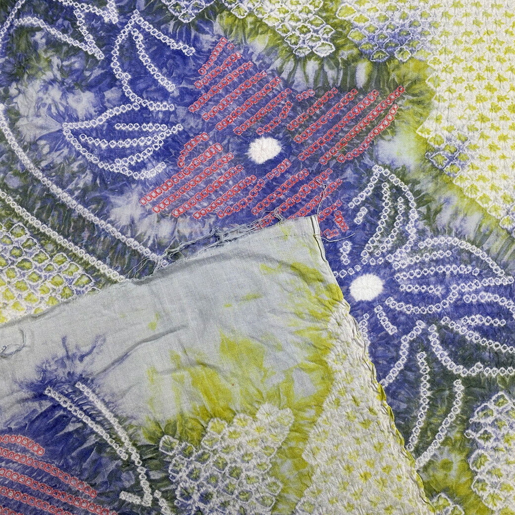 布を縫ったり畳んだり、糸で巻いたりするなどして染まらない部分を作り、模様を描き出します。