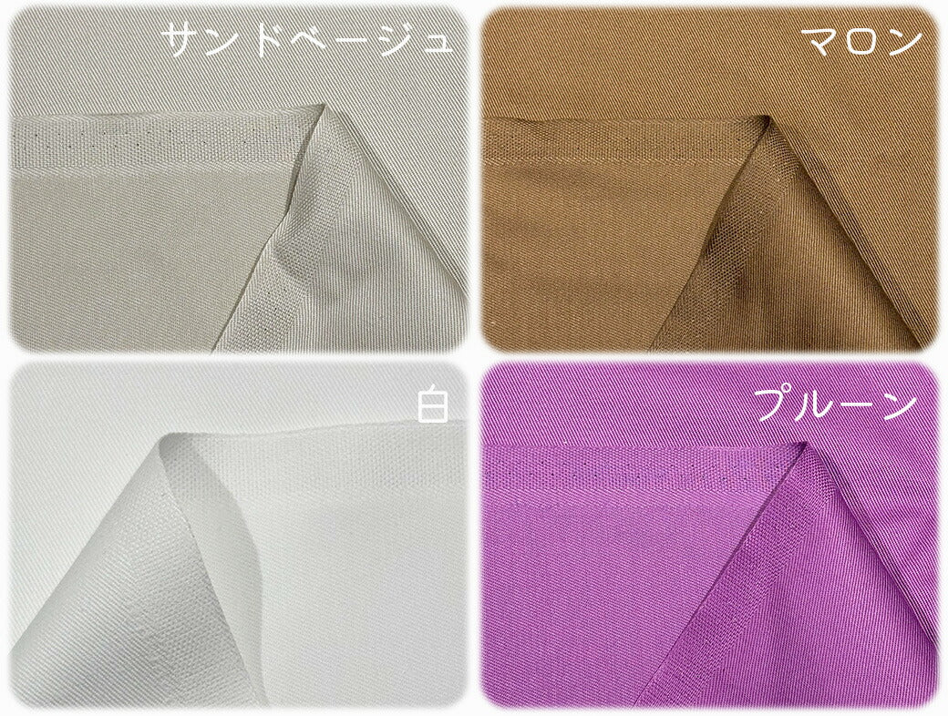 色 | サーモンピンク・イタリアンレッド・アプリコット・レモンイエロー・マスタード・モスグリーン・ミドルグリーン・バイオレット・ターコイズブルー・プリンセスブルー・サンドベージュ・マロン・白・プルーン・黒 |