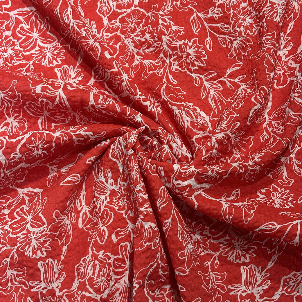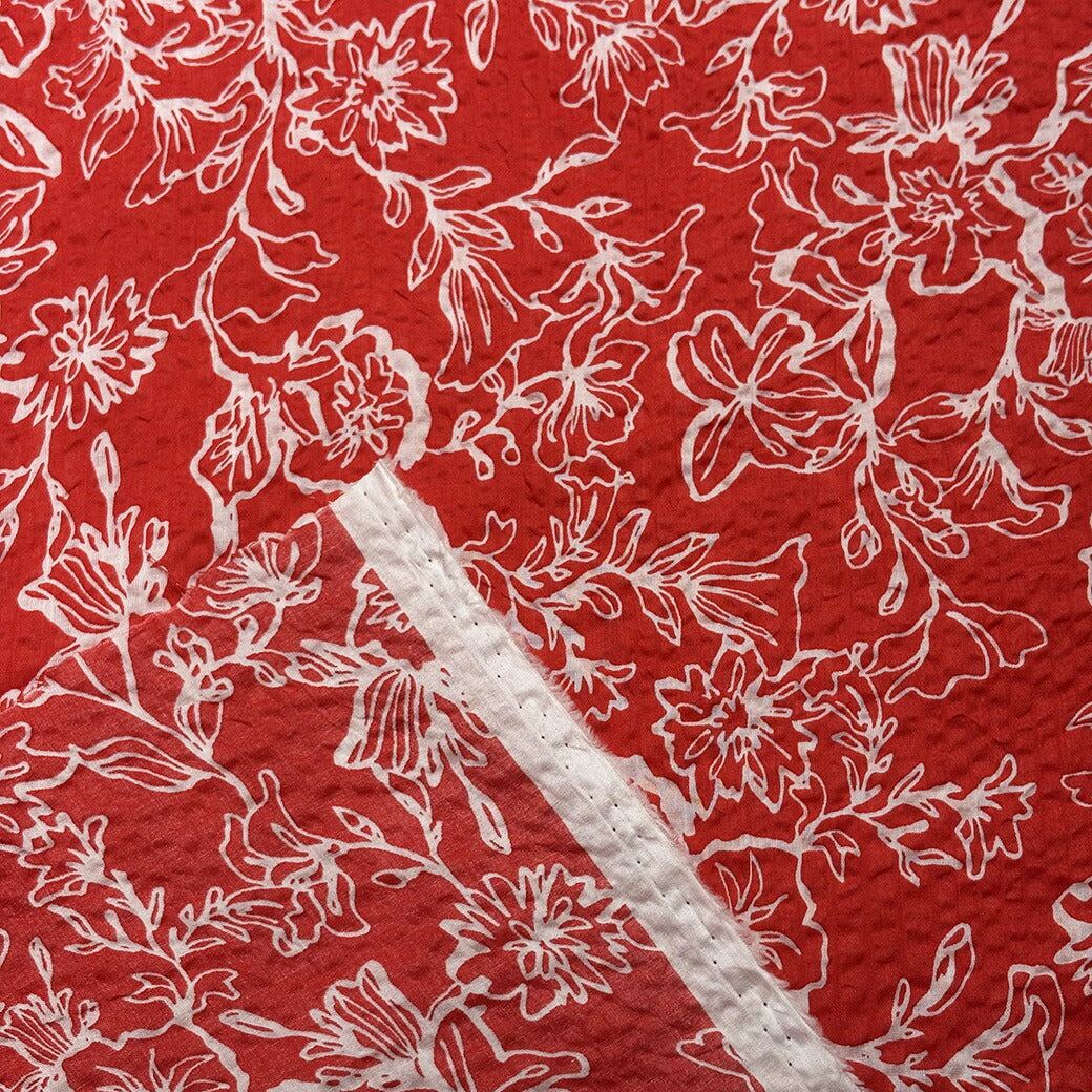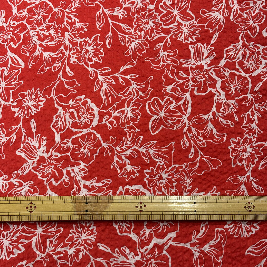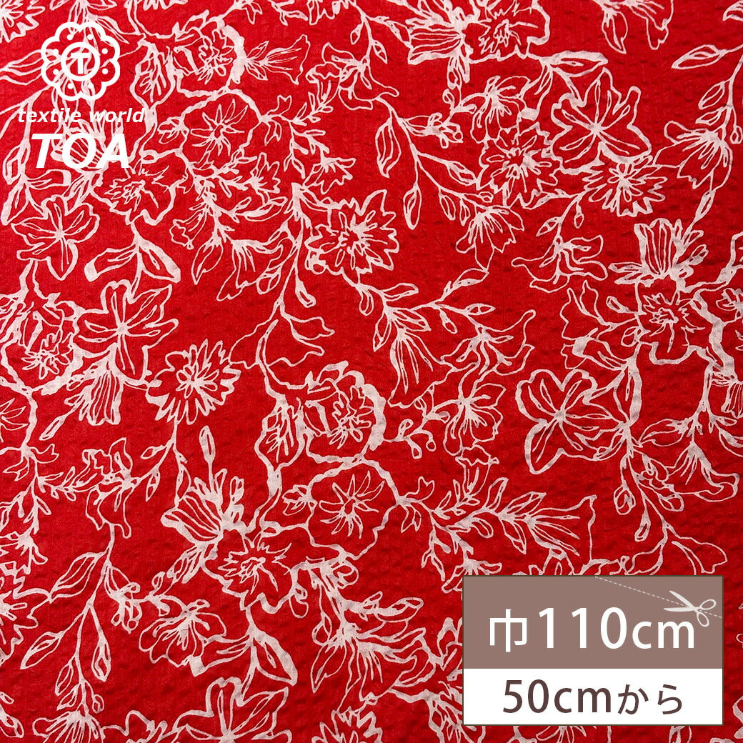 生地 【 ミラクルウェーブ 朝顔 レッド 】 浴衣生地 甚平生地 アサガオ 花柄 フラワー ゆかた 甚平 じんべい 花火大会 夏祭り お祭り まつり 盆踊り 夏 パジャマ ステテコ 綿生地 コットンプリント 綿プリント 夏生地