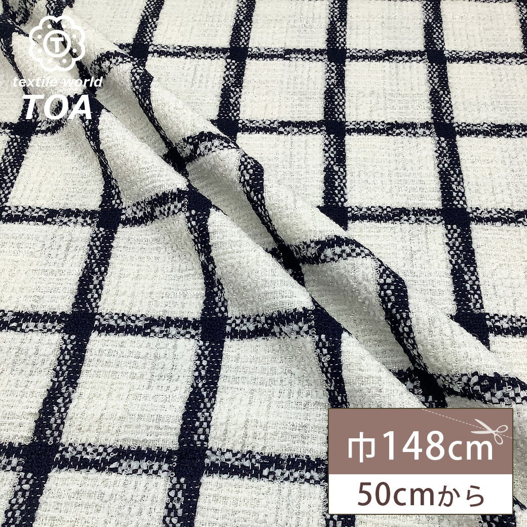 生地 【 ファンシーツイード チェック柄 】 ツイード生地 ファンシーツイード生地 ツィード ファンシーツィード ブロックチェック チェック柄生地 広幅 幅広 ジャケット コート スーツ ワンピース バッグ インテリア カーテン ハンドメイド 手作り 手芸 Textile world TOA