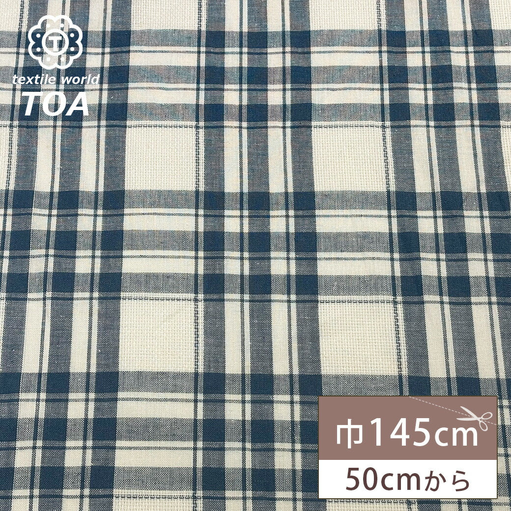 生地 【 綿麻チェック ターコイズ 】 リネン生地 綿麻生地 コットンリネン リネン タータンチェック チェック柄 タータン チェック柄生地 麻 チェックプリント 格子 ブラウス シャツ スカート 子ども服 カーテン ステテコ パンツ 夏 ポーチ インテリア Textile World TOA