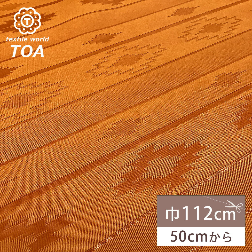 生地 【 ネイティブ柄 撥水加工 オレンジ 】 オルテガ柄 撥水 防水 ネイティブ 撥水生地 チマヨ柄 民族柄 インディアン柄 キャンプ アウトドア フェス ヴィンテージ レトロ ラグ 幾何学模様 光沢 ツルツル テーブルクロス クッションカバー インテリア Textile World Toa
