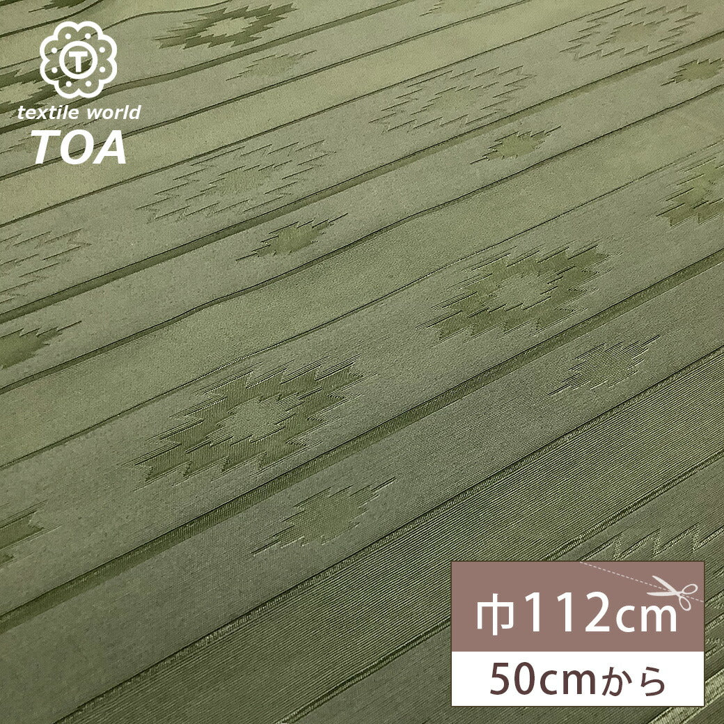 生地 【 ネイティブ柄 撥水加工 カーキ 】 オルテガ柄 撥水 防水 ネイティブ 撥水生地 チマヨ柄 民族柄 インディアン柄 キャンプ アウトドア フェス ヴィンテージ レトロ ラグ 幾何学模様 光沢 ツルツル テーブルクロス クッションカバー インテリア Textile World Toa