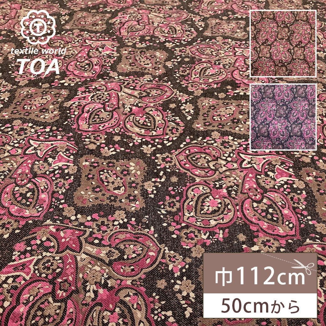 生地 【 ビエラプリント 】 アンティーク調 ダマスク柄 クラシカル調 ウール ウール生地 ポリエステル 幾何学模様 布地 冬生地 厚い 厚い生地 ブラウン ネイビー かわいい クッションカバー ボタニカル ブラウス シャツ バッグ スカート 冬用 クリスマス textile world toa