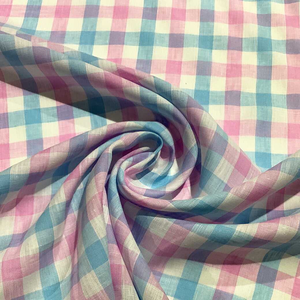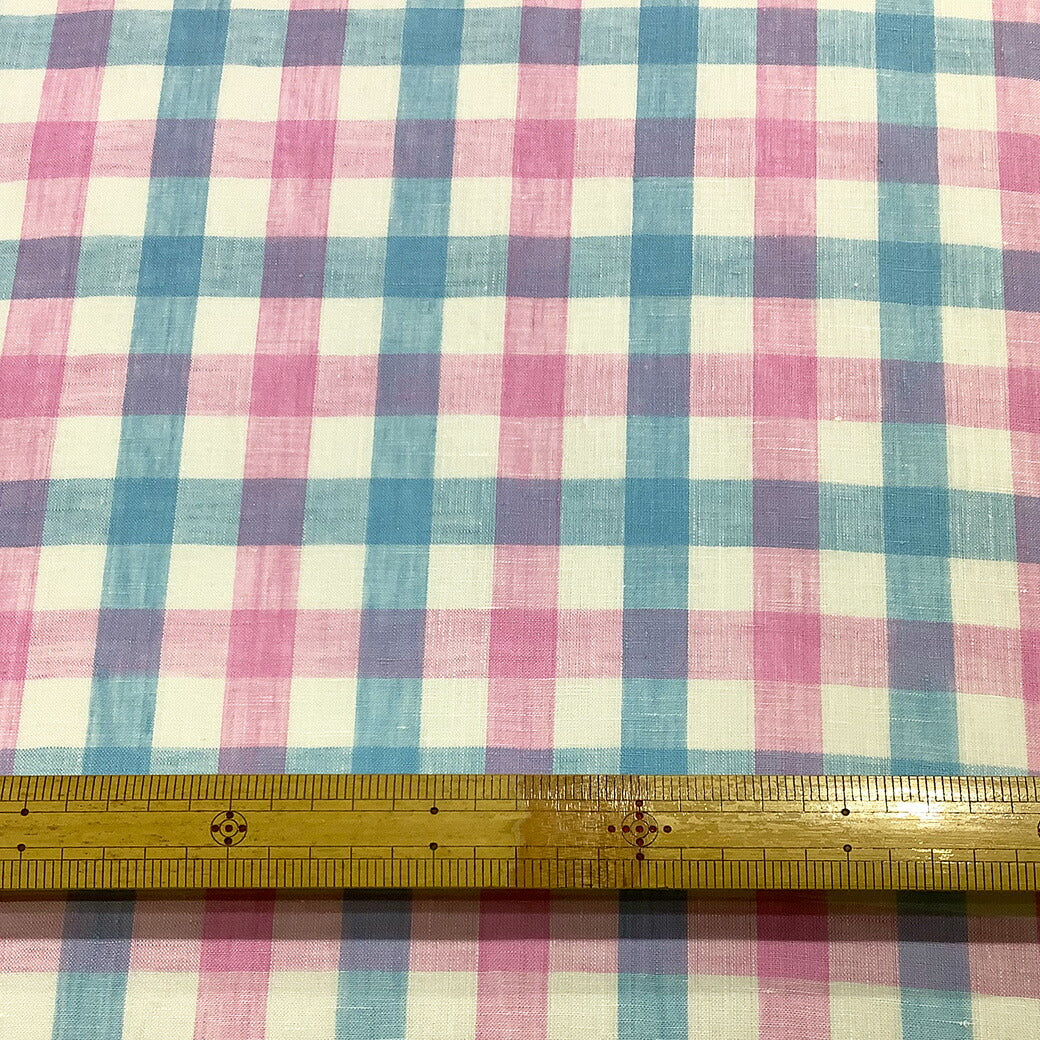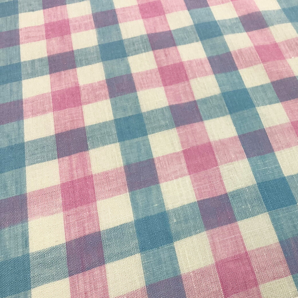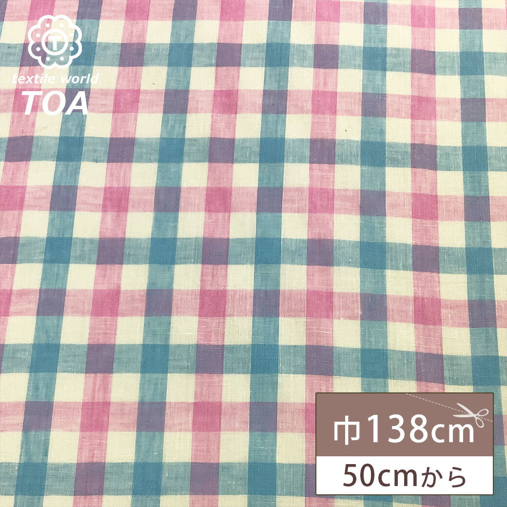 生地 【 リネン ブロックチェック ピンク×ブルー 】 リネン生地 タータンチェック チェック柄 チェック柄生地 リネン 麻 チェックプリント 格子 ナチュラル ブラウス シャツ スカート 子ども服 カーテン ステテコ ポーチ 小物 雑貨 春夏 夏 インテリア Textile World TOA