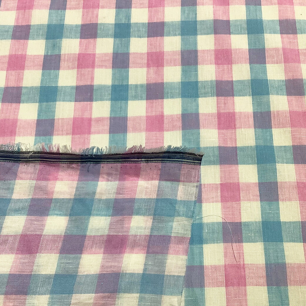 商品名 | 【 リネン ブロックチェック ピンク×ブルー 】 |