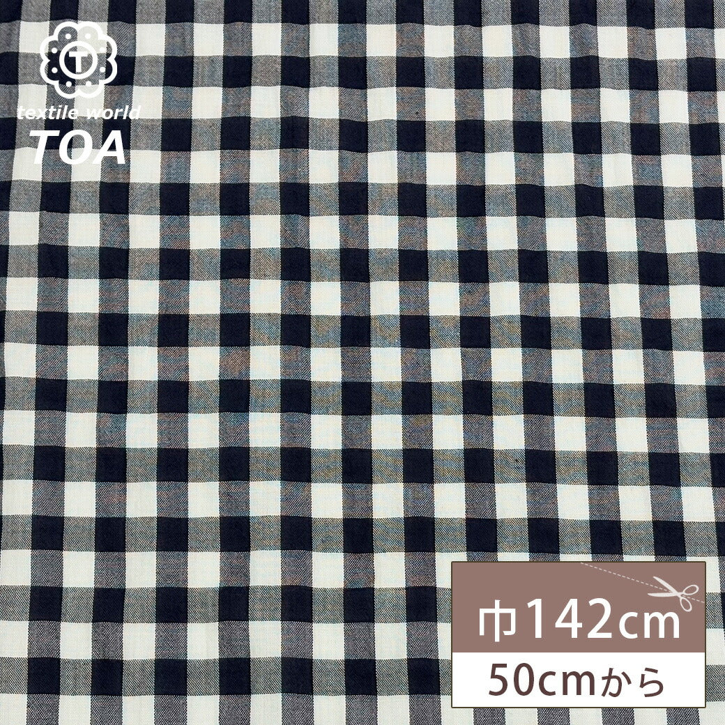 生地 【 ギンガム ネイビー 】 チェック チェック柄 チェック生地 ギンガムチェック やわらか ブラウス シャツ 夏生地 夏 パジャマ ステテコ 定番生地 モダール 綿混生地 コットンプリント 綿プリント 夏生地 薄い 薄地 軽い 光沢感 可愛い 入園 入学 Textile World TOA
