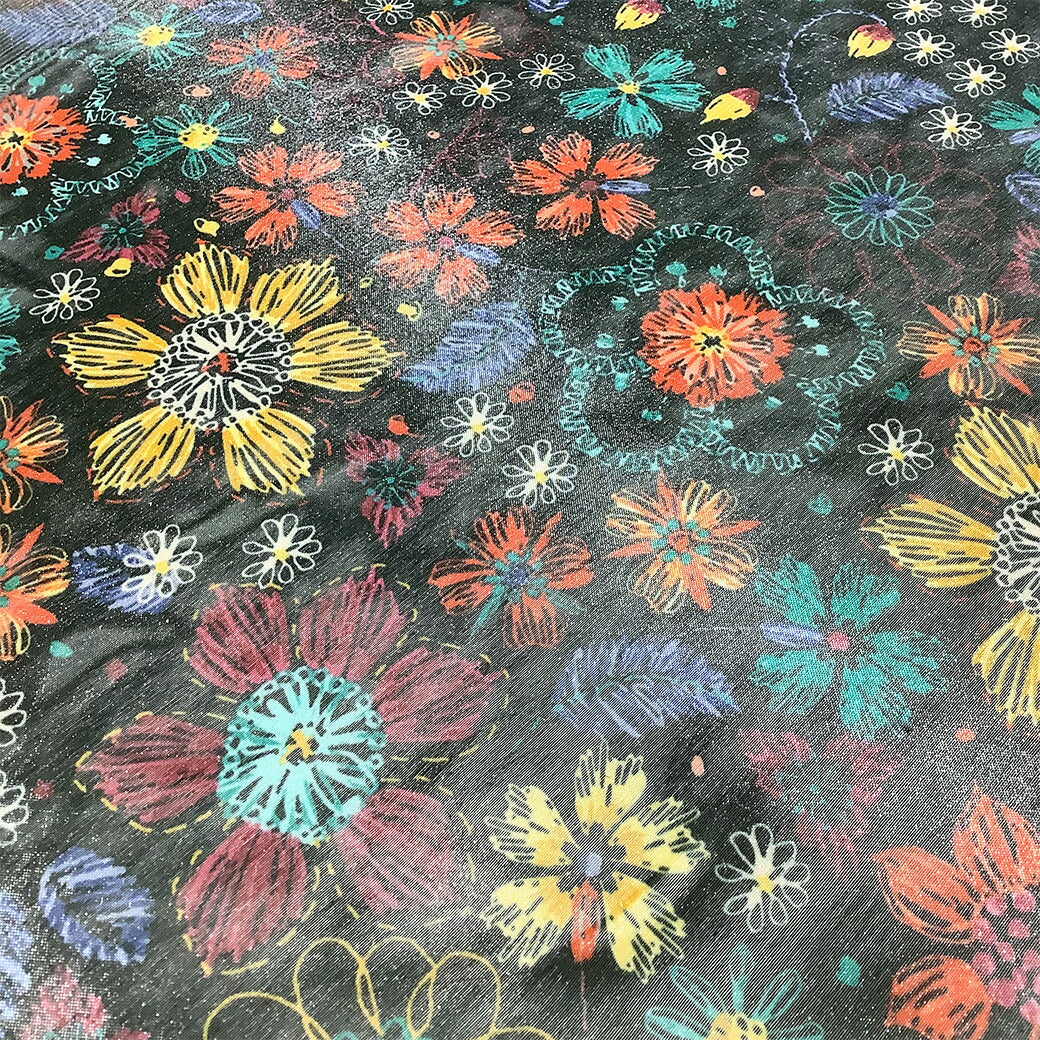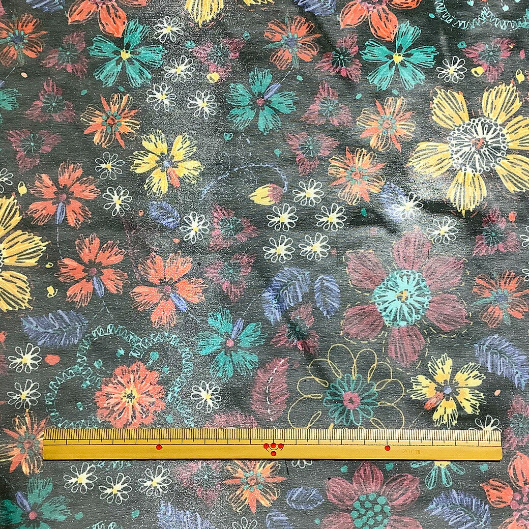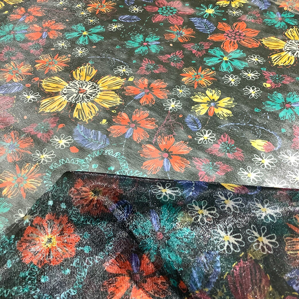 生地 【 オーガンジープリント 花柄 】 オーガンジー 生地 柄 プリントオーガンジー 花柄 手描き風 イラスト フラワープリント エレガント ブラウス ワンピース スカート 発表会 衣装 卒業制作 衣装作り ダンス衣装 インテリア ブラック オレンジ 黄色 緑 Textile World TOA