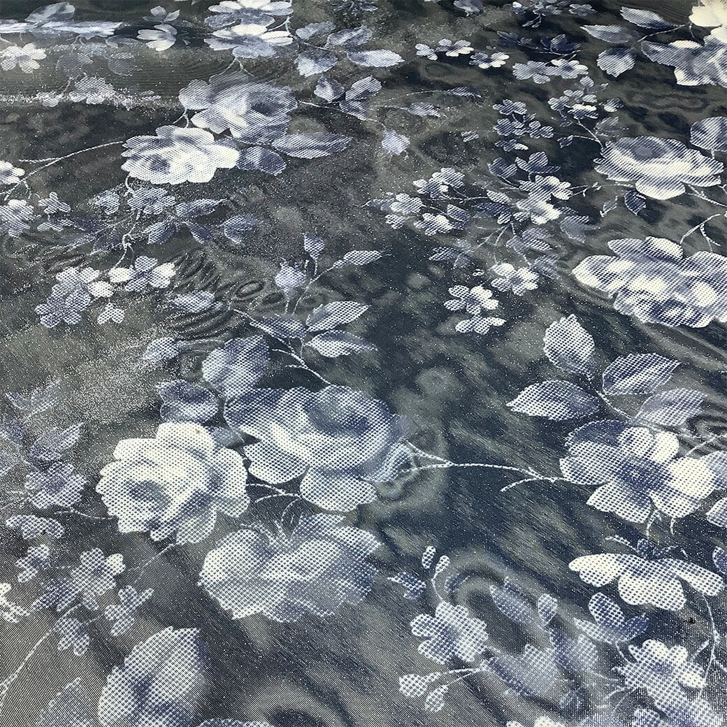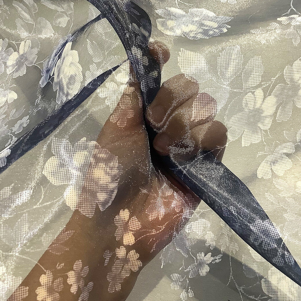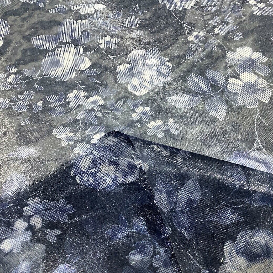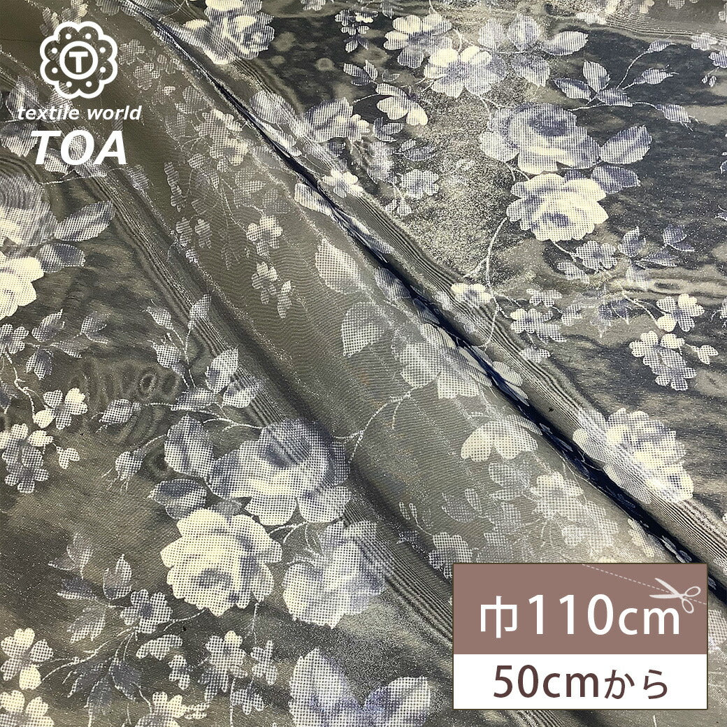 生地 【 オーガンジープリント 花柄 】 オーガンジー 生地 プリントオーガンジー 薔薇 バラ ローズ フェミニン アンティーク エレガント ブラウス ワンピース スカート 発表会 衣装 卒業制作 衣装作り ダンス衣装 インテリア ブルー 紺 ネイビー 青 Textile World TOA