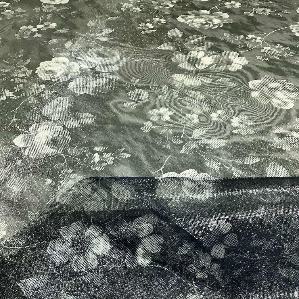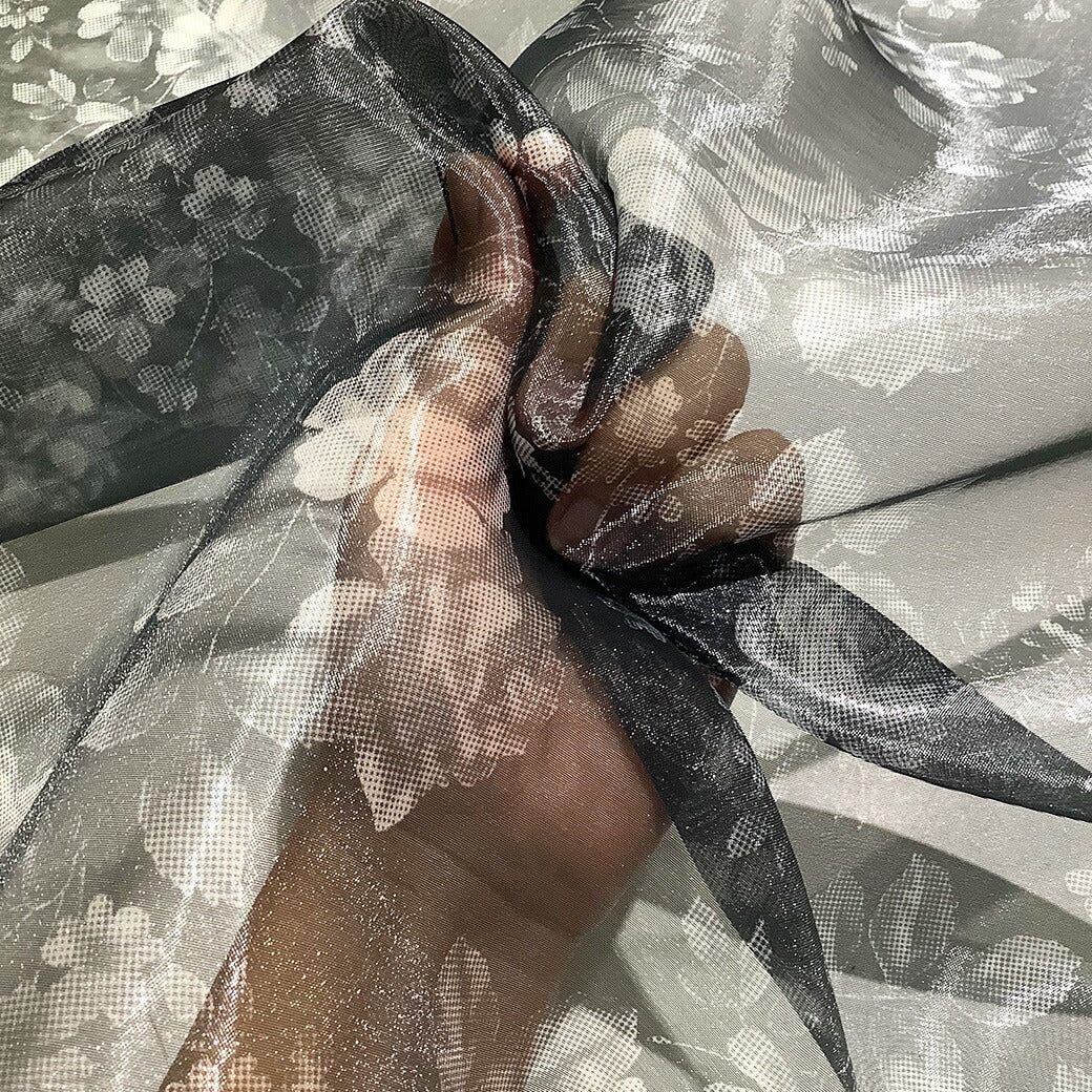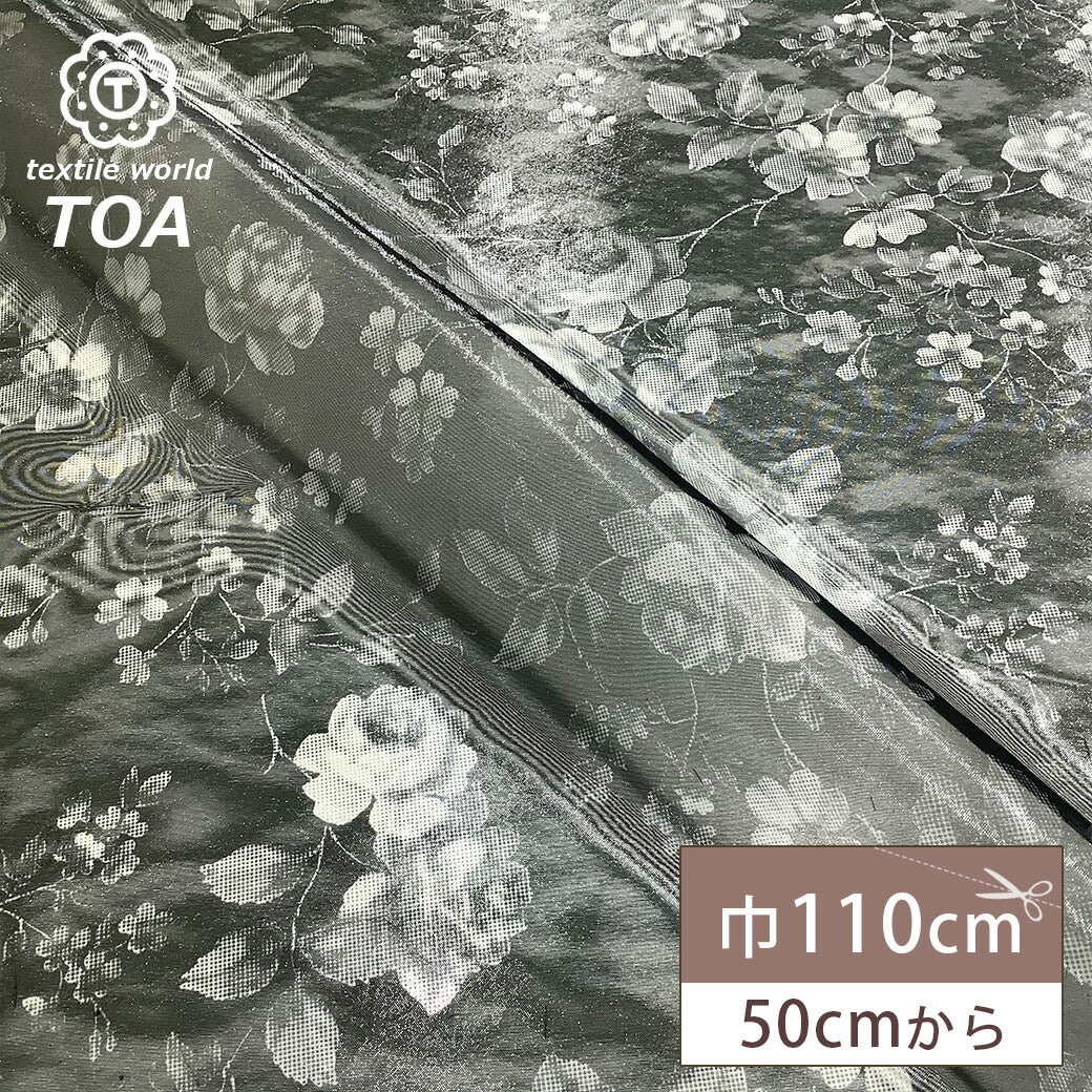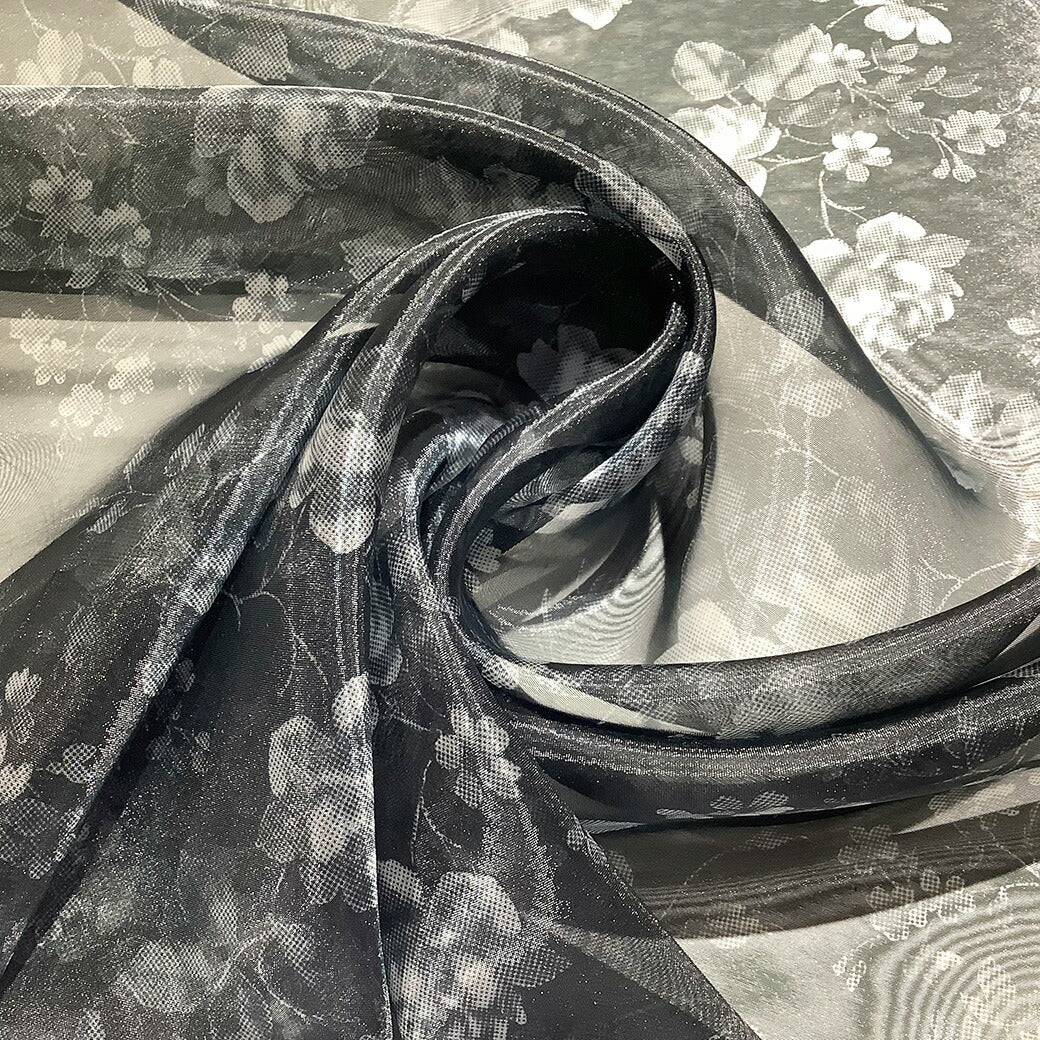 生地 【 オーガンジープリント 花柄 】 オーガンジー 生地 プリントオーガンジー 薔薇 バラ ローズ フェミニン アンティーク エレガント ブラウス ワンピース スカート 発表会 衣装 卒業制作 衣装作り ダンス衣装 インテリア ブラック 黒 グレー モノクロ Textile World TOA