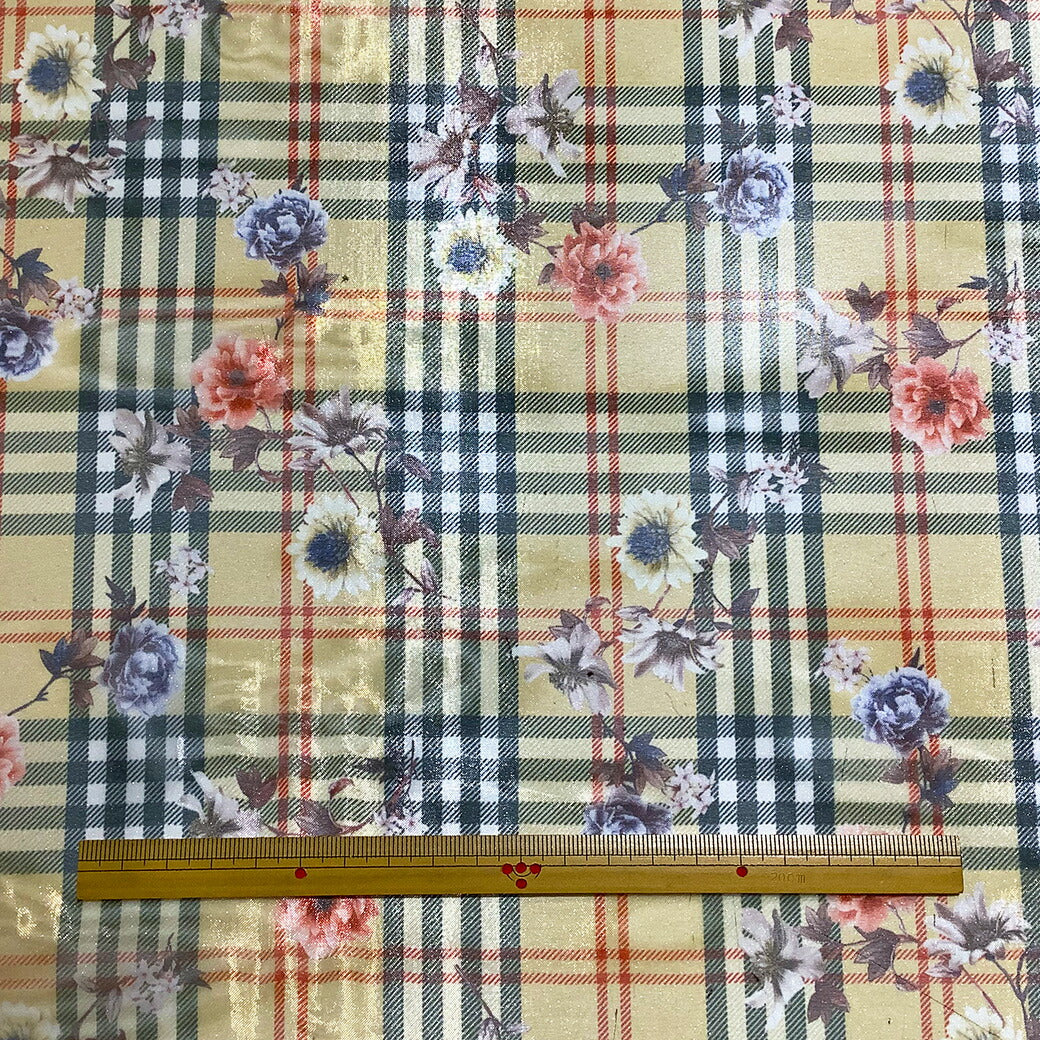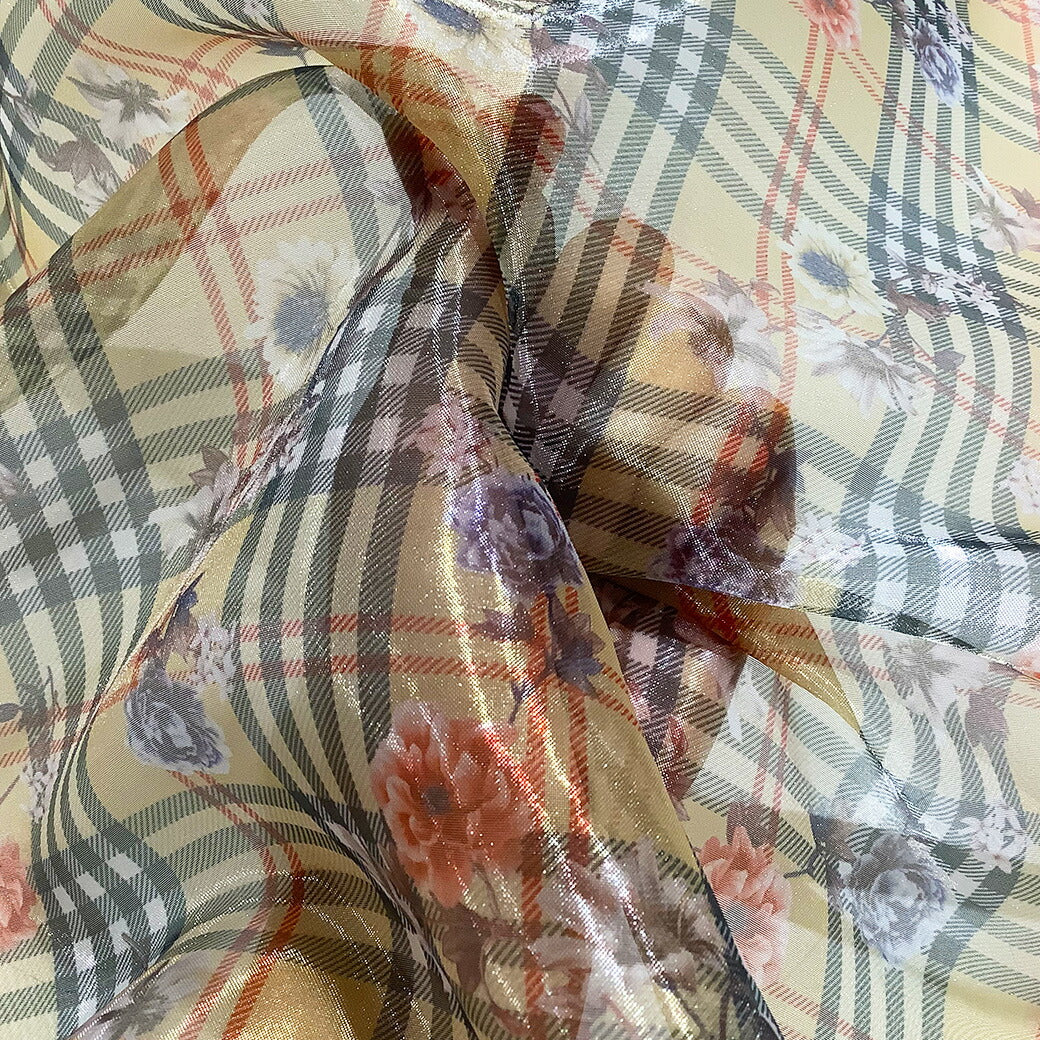 バーバリーチェックに花柄がおしゃれなプリントオーガンジー。