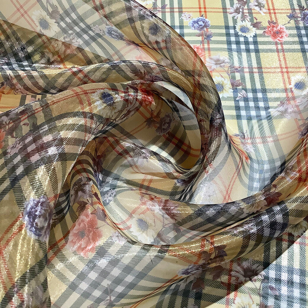 生地 【 オーガンジープリント チェック柄 】 オーガンジー 生地 プリントオーガンジー バーバリーチェック タータンチェック ロイヤルタータンチェック 花柄 お洒落 エレガント ブラウス ワンピース スカート 発表会 衣装 卒業制作 ダンス衣装 インテリア Textile World TOA