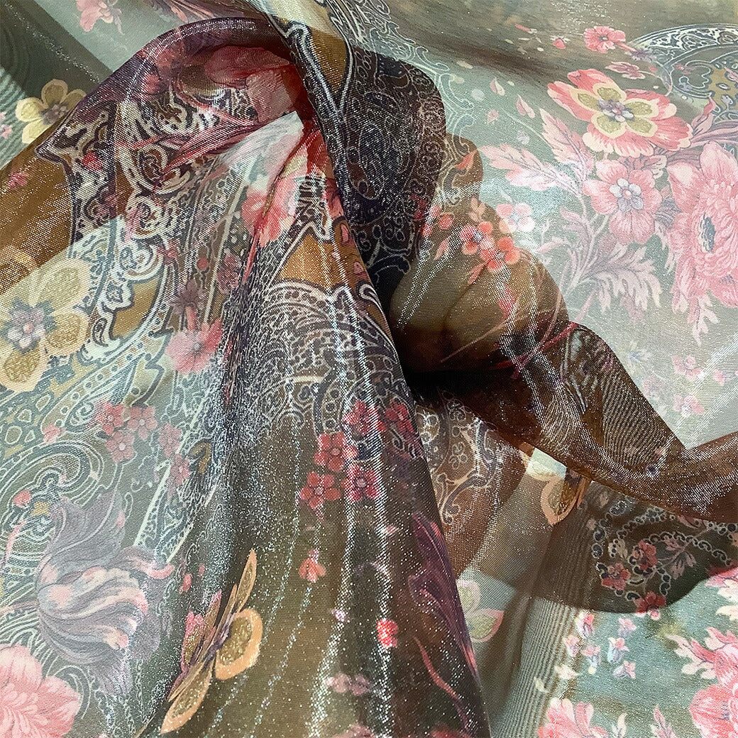 牡丹の花とペイズリー柄がエレガントなオーガンジー。