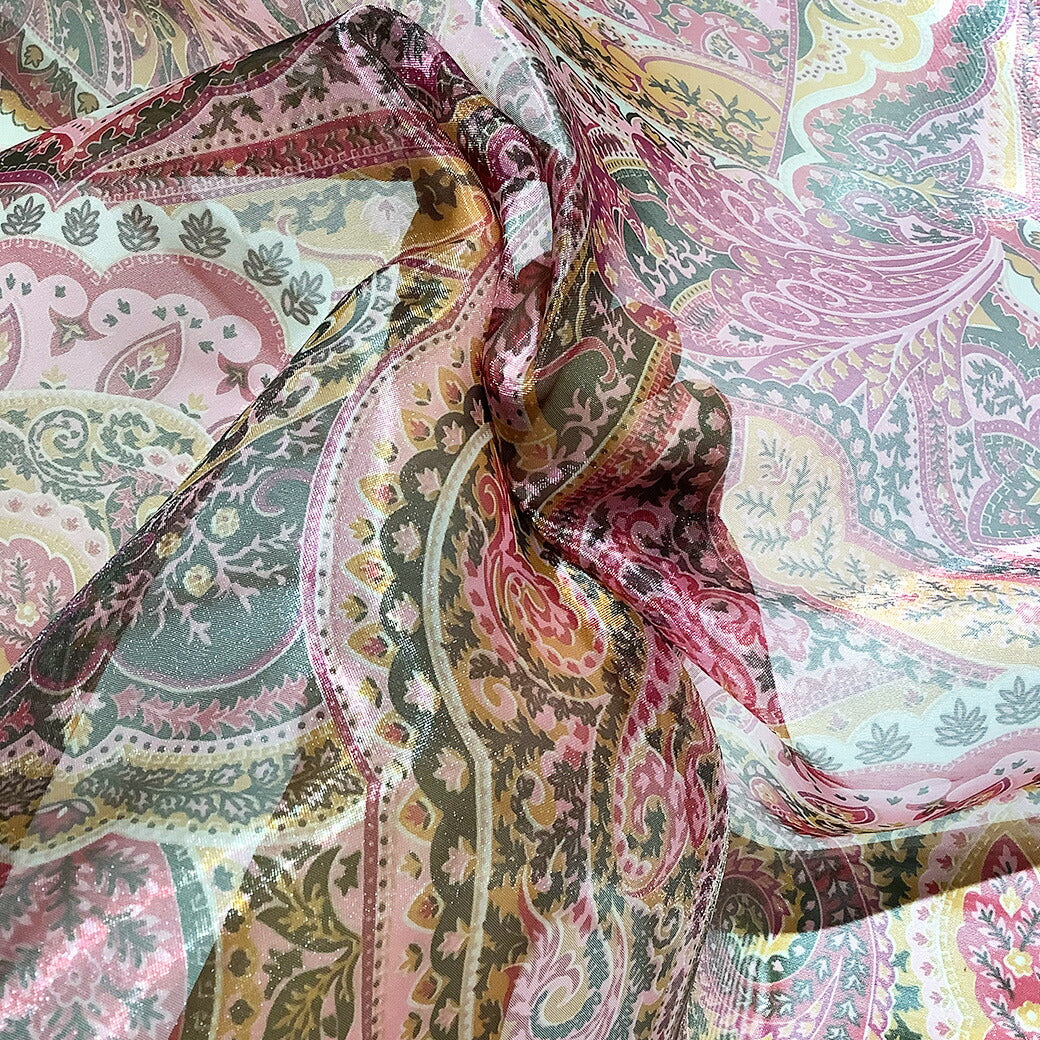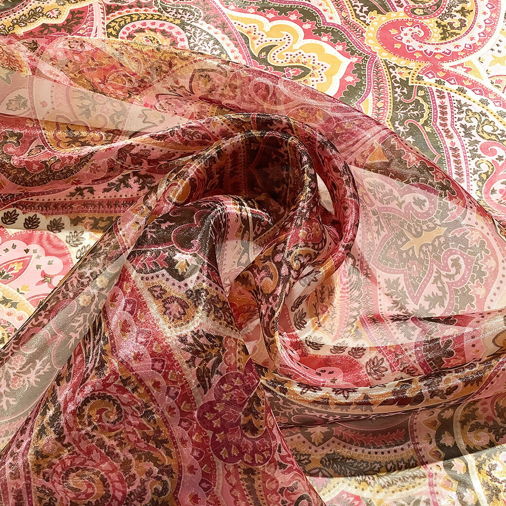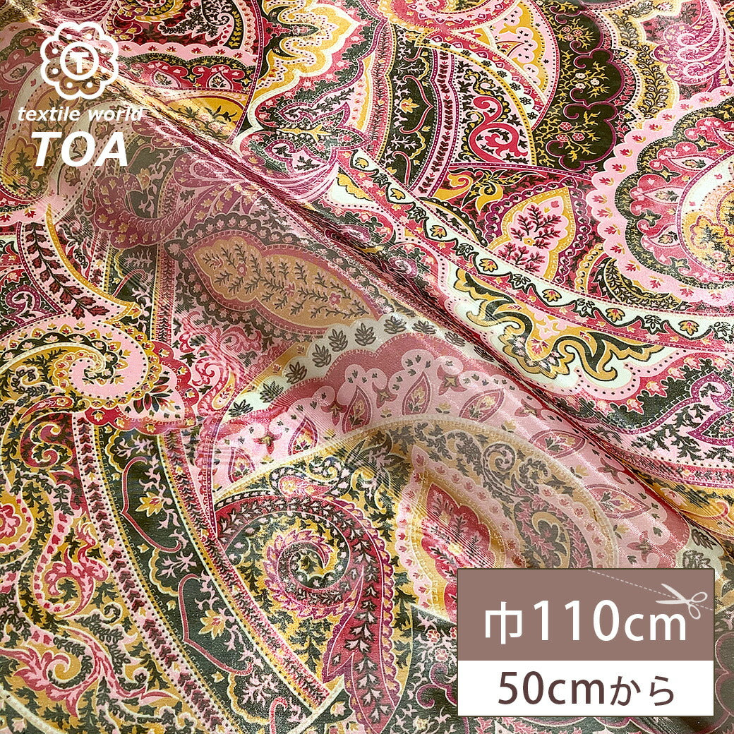 生地 【 オーガンジープリント ペイズリー 】 オーガンジー 生地 プリントオーガンジー ペイズリー柄 幾何学模様 バンダナ柄 エスニック 大柄 エレガント ブラウス ワンピース スカート 発表会 衣装 卒業制作 衣装作り ダンス衣装 インテリア ピンク 紫 Textile World TOA