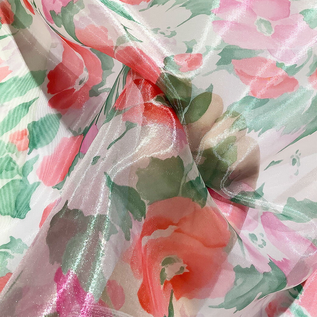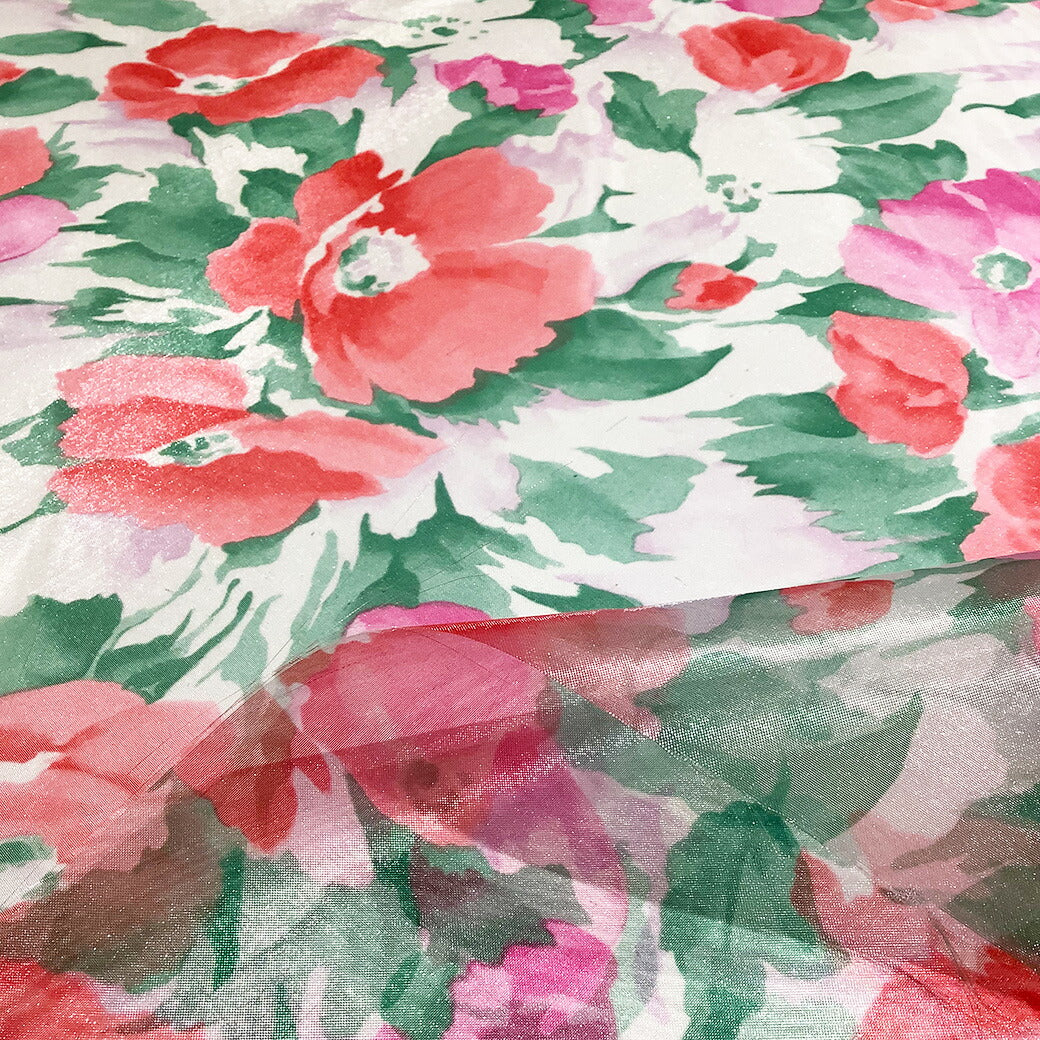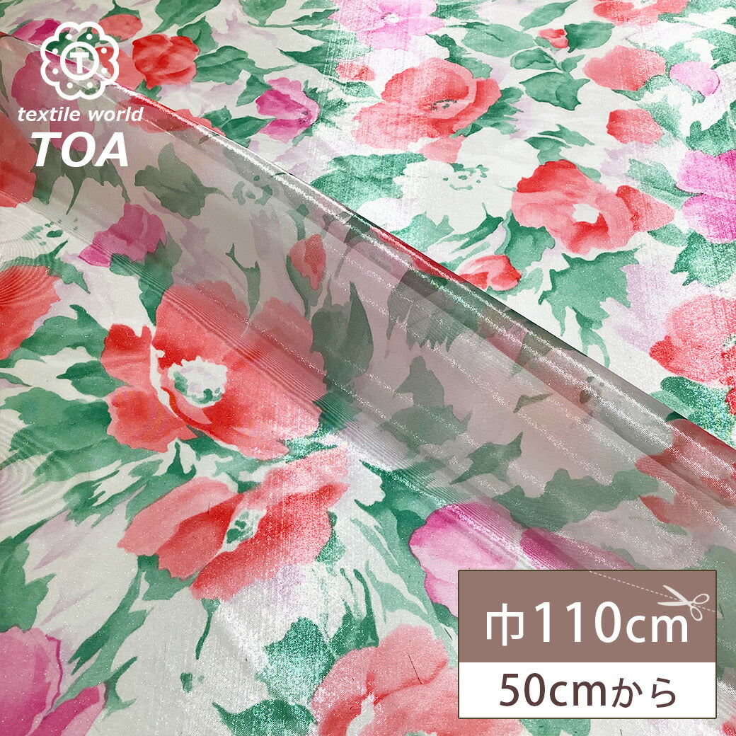アネモネのような鮮やかなフラワープリントが可愛いオーガンジー。
