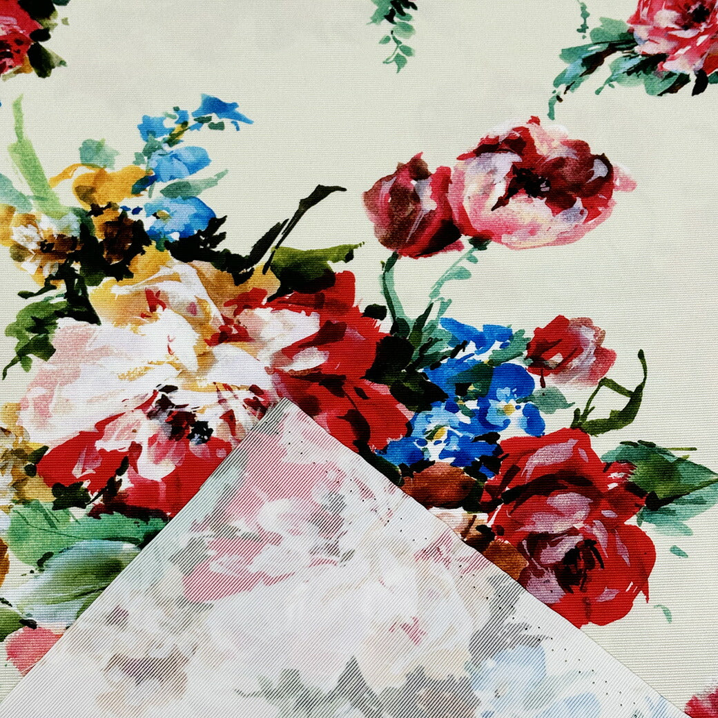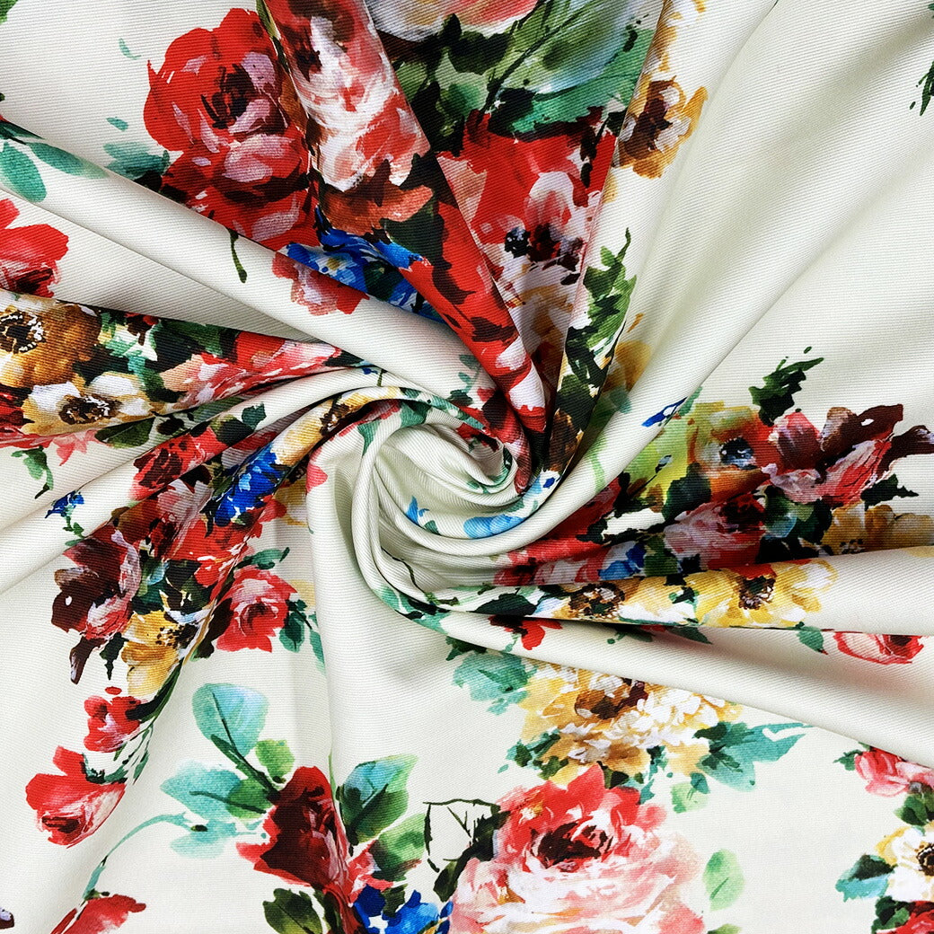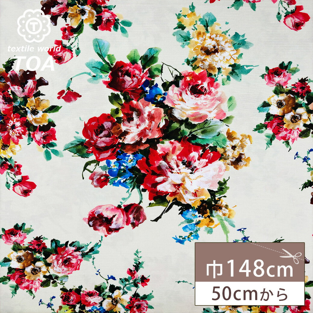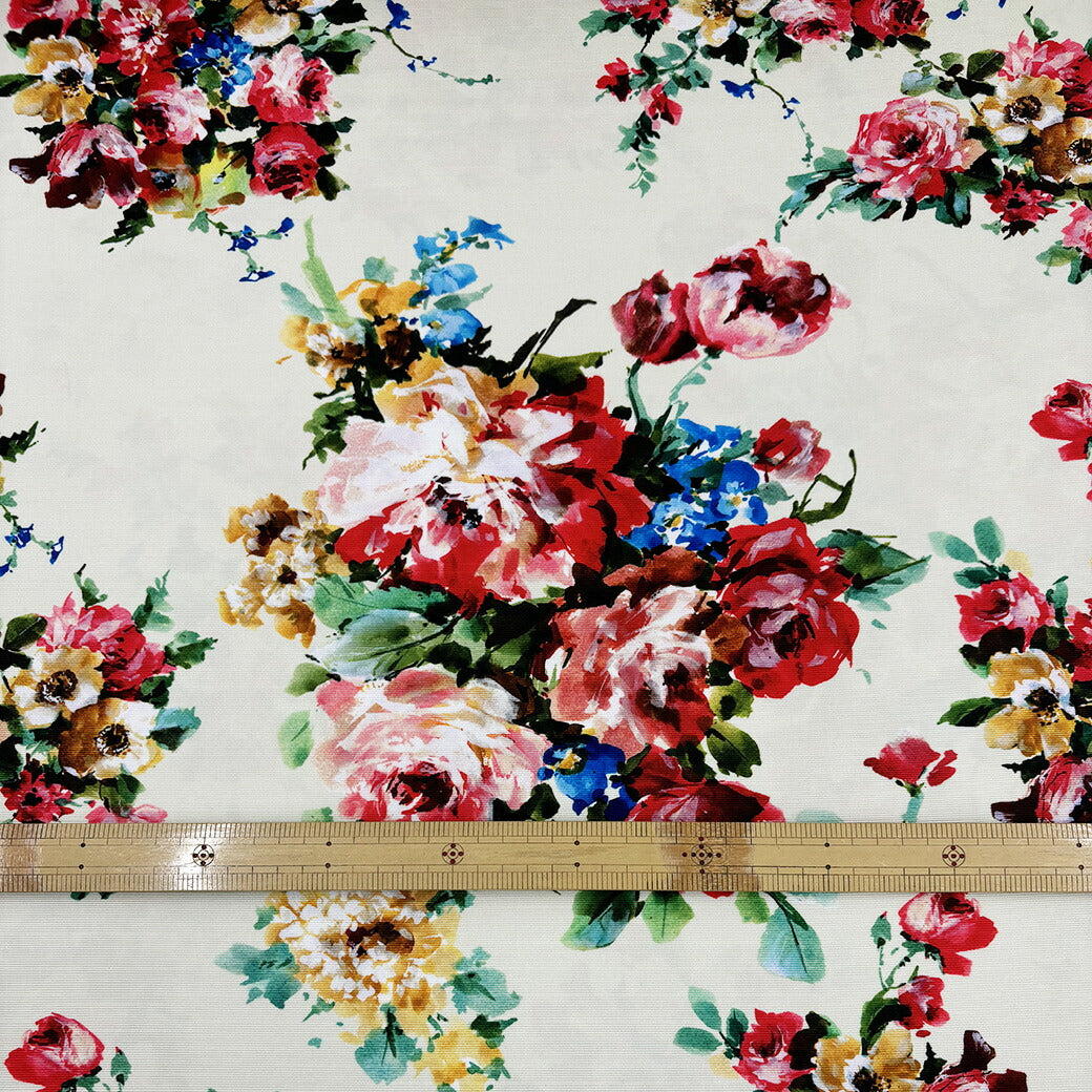 生地 【 グログランインクジェット 花柄 オフホワイト 】 インクジェット インクジェット生地 グログラン インクジェットプリント 薔薇 バラの花 ローズ ボタニカルフラワー 花柄生地 水彩画 絵画 ワンピース ドレス スカー