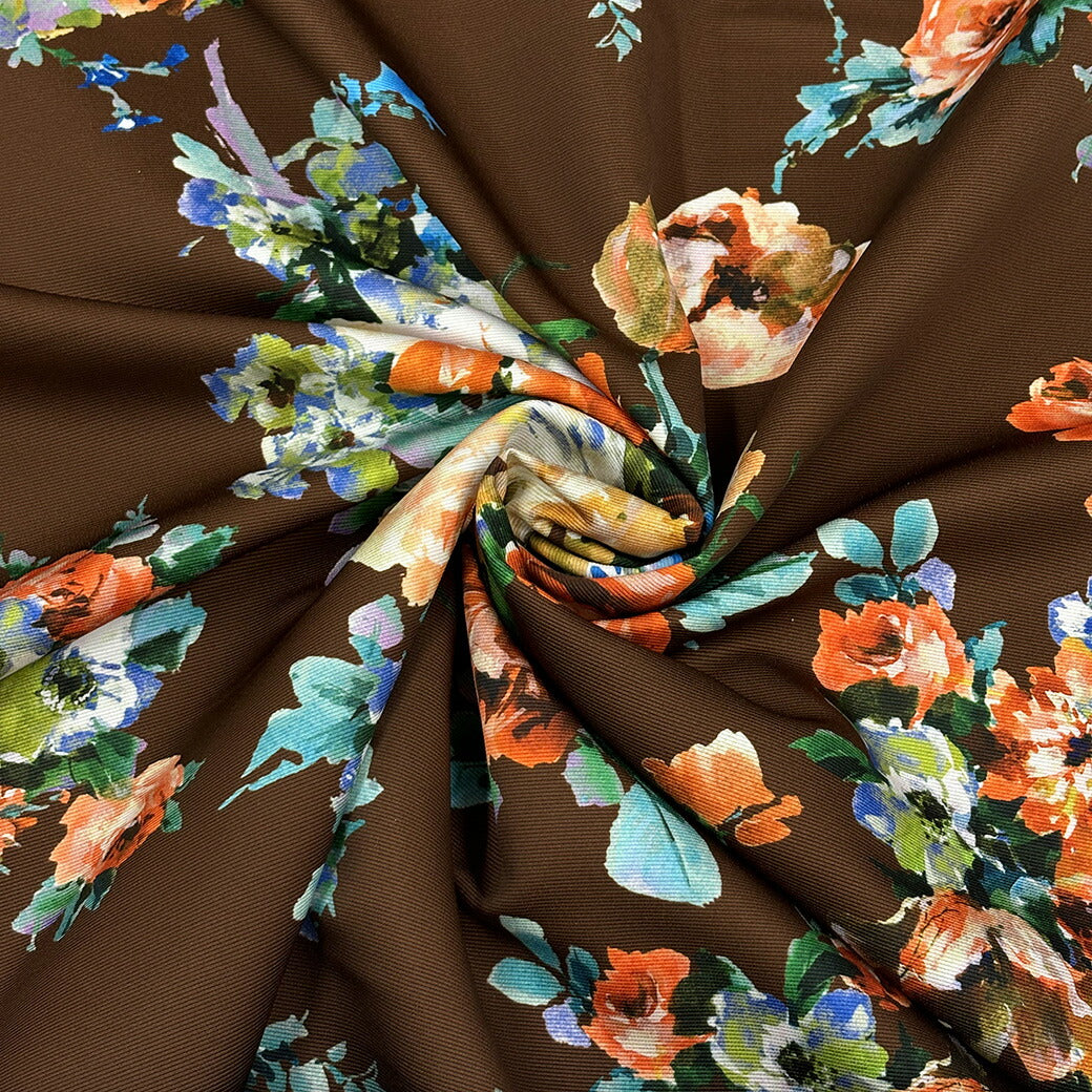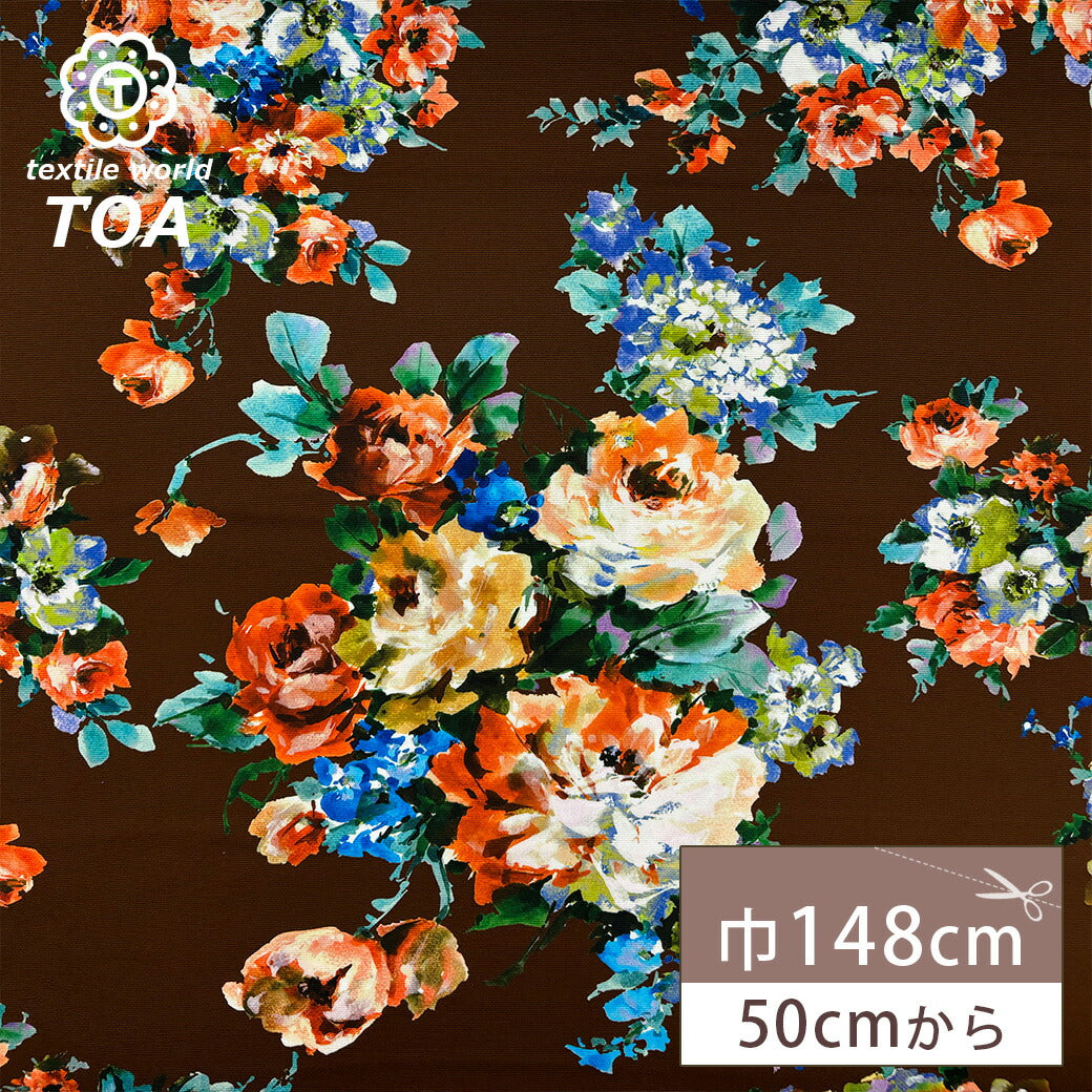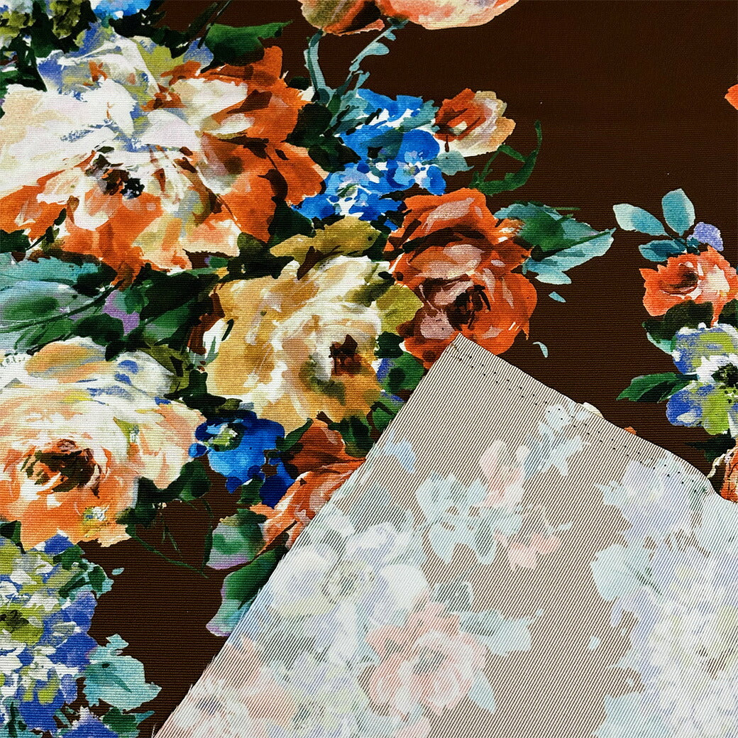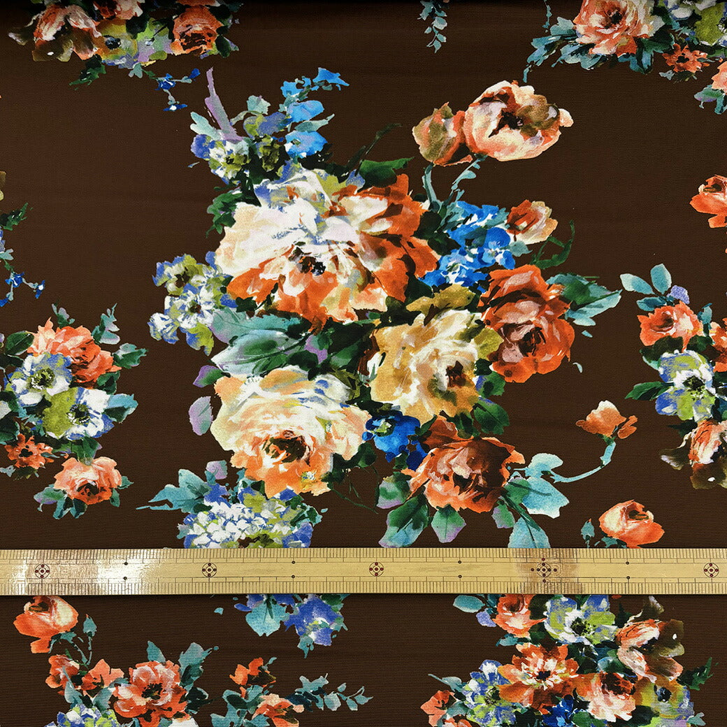 生地 【 グログランインクジェット 花柄 ブラウン 】 インクジェット インクジェット生地 グログラン インクジェットプリント 薔薇 バラの花 ローズ ボタニカルフラワー 花柄生地 水彩画 絵画 ワンピース ドレス スカート