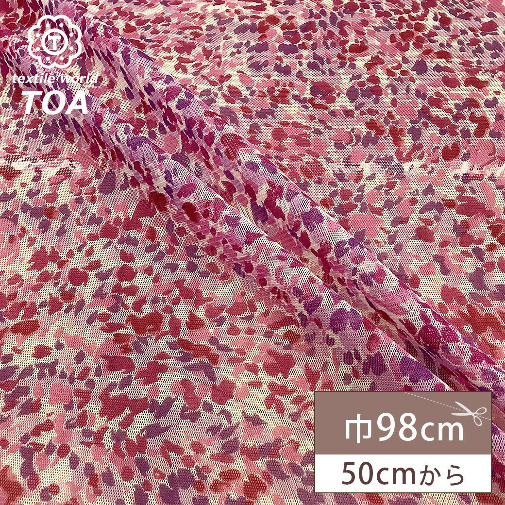 生地 【 サモーラネット ピンク 】 パワーネット ネット生地 メッシュ生地 水彩画 花柄 小花柄 あられ 水彩画風 チュール生地 チュール メッシュ 秋色 オータム オータムカラー スヌード ポリエステル プリント生地 おしゃれ 手芸 ハンドメイド 洋裁 Textile World Toa