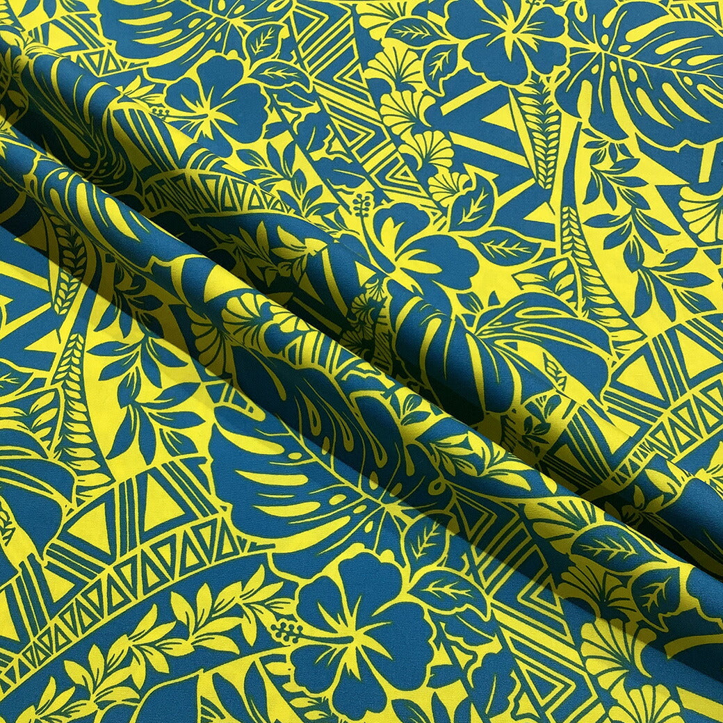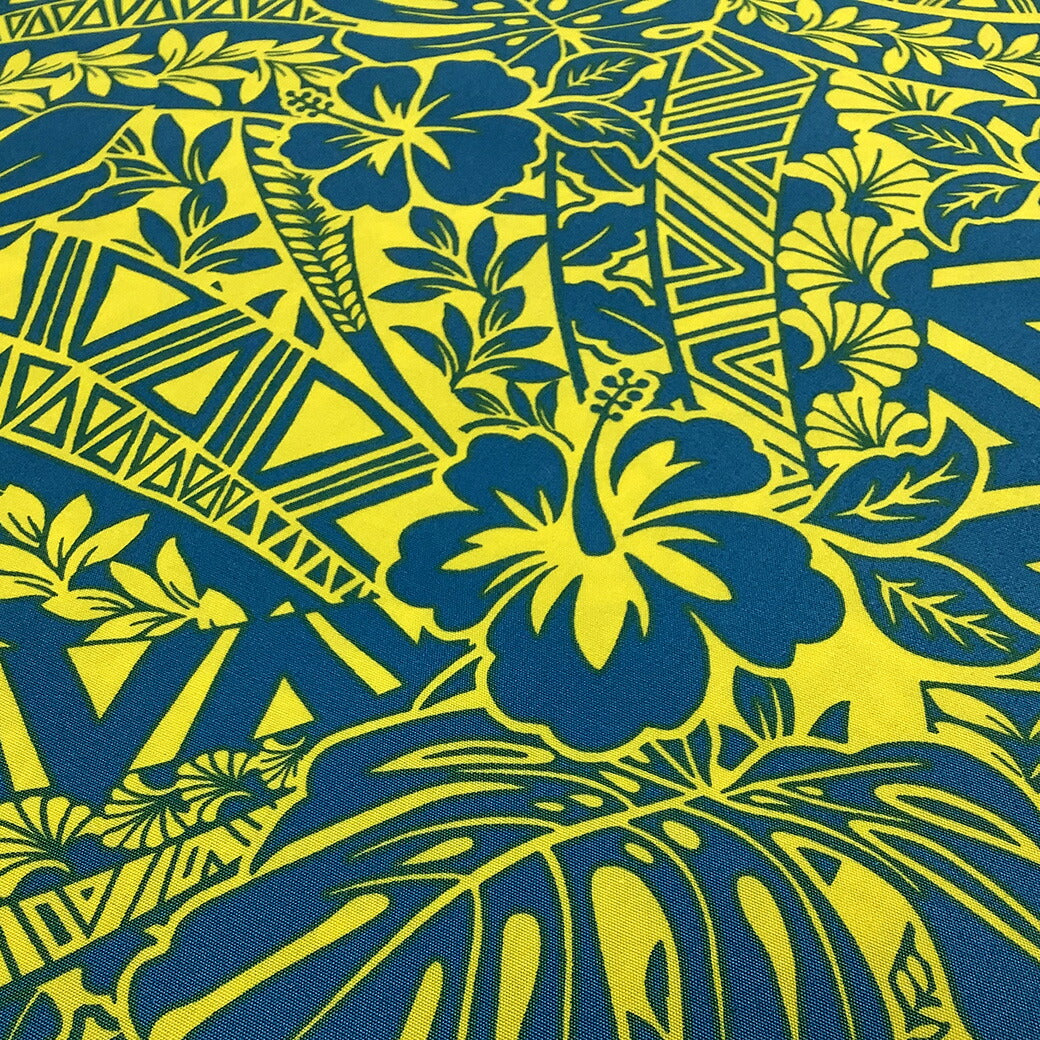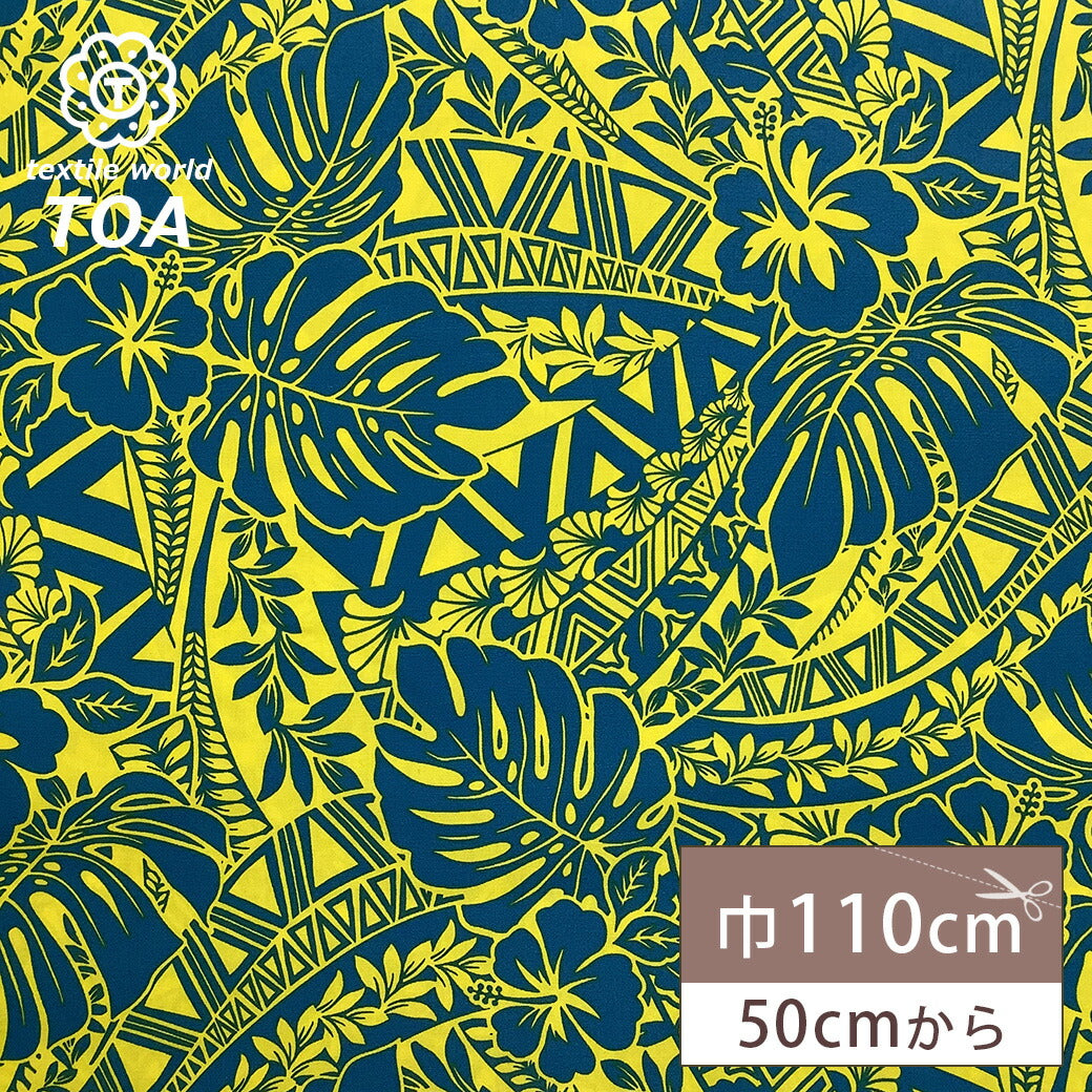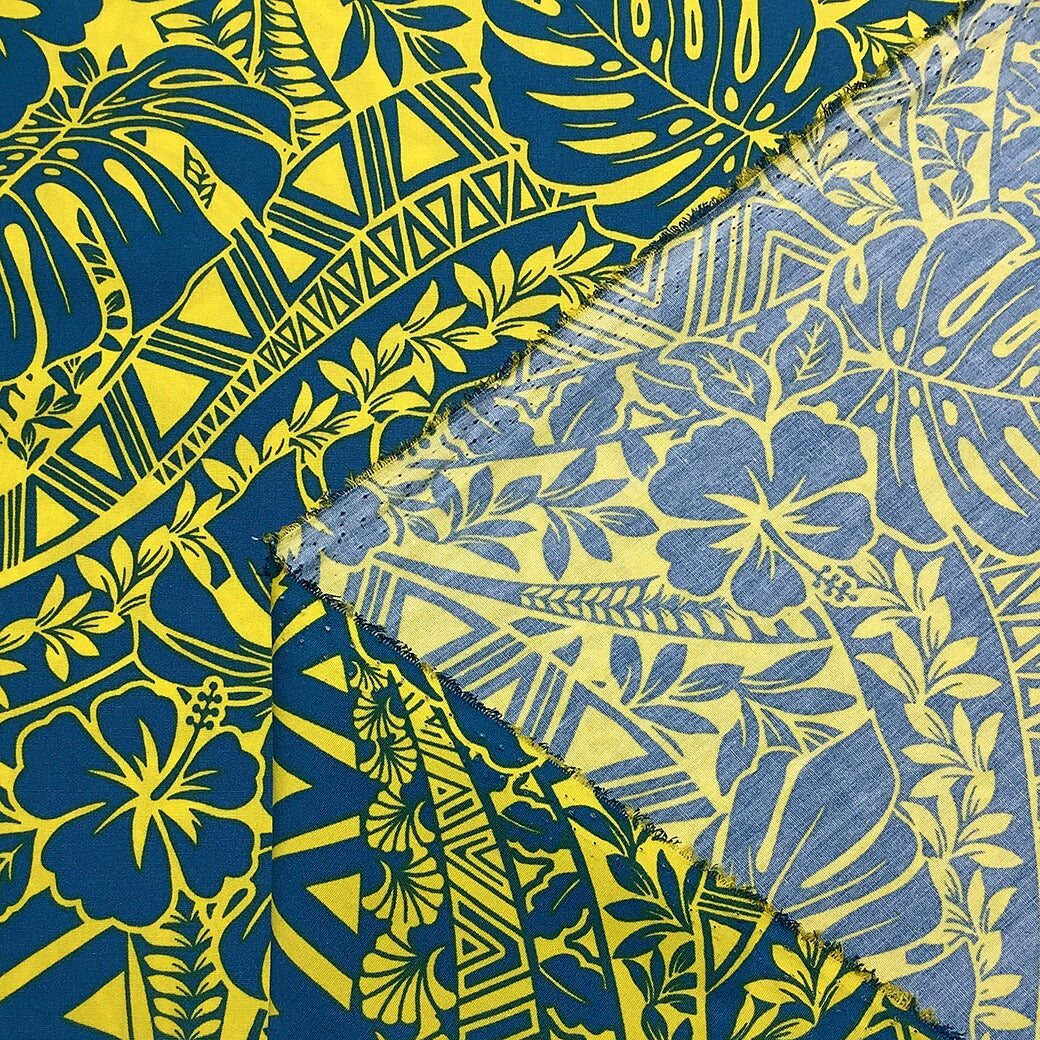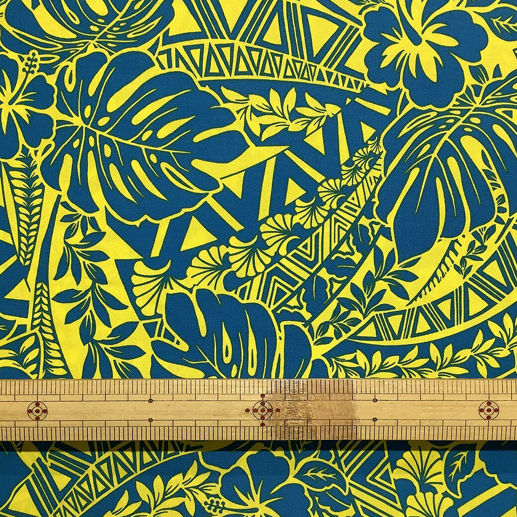 生地 【 ハワイアン モンステラ イエロー×コバルト 】 ハワイアン生地 アロハ生地 ハイビスカス モンステラ トロピカル カカウ フラダンス ハワイ生地 アロハ 夏生地 アロハシャツ シャツ パウスカート ムームー ハワイ