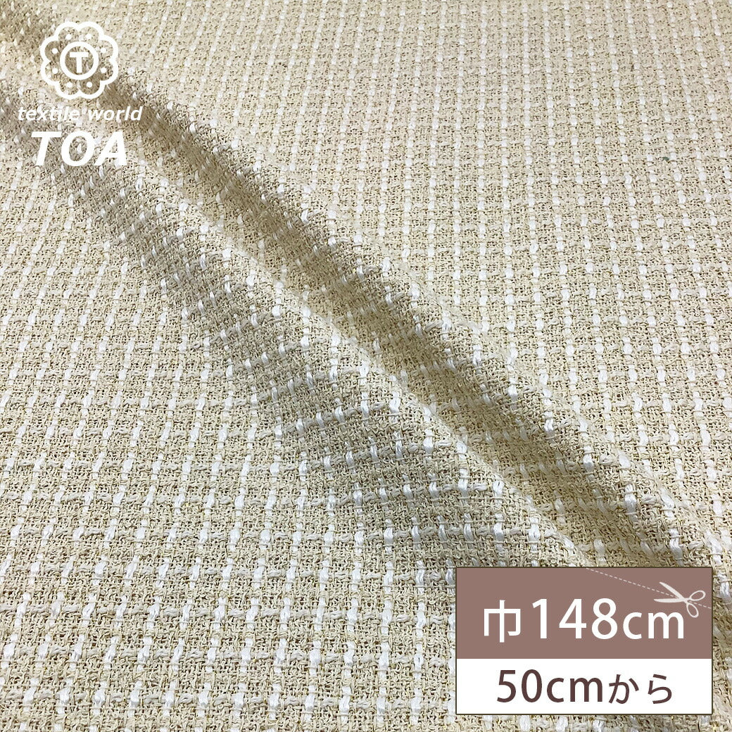 生地 【 ファンシーツイード クリーム 】 ツイード生地 ゴールドラメ入り ファンシーツイード生地 ツィード ファンシーツィード ラメ入りツイード 広幅 幅広 ジャケット コート スーツ ワンピース バッグ インテリア カーテン ハンドメイド 手作り 手芸 Textile world TOA