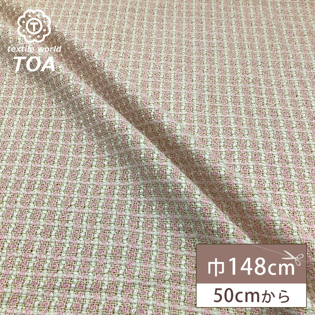 生地 【 ファンシーツイード ピンク 】 ツイード生地 ゴールドラメ入り ファンシーツイード生地 ツィード ファンシーツィード ラメ入りツイード 広幅 幅広 ジャケット コート スーツ ワンピース バッグ インテリア カーテン ハンドメイド 手作り 手芸 Textile world TOA