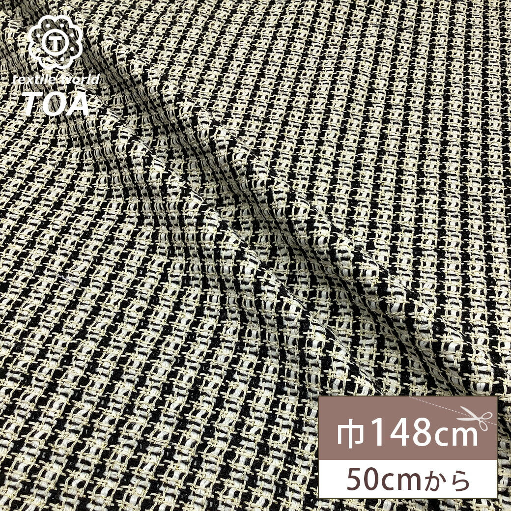 生地 【 ファンシーツイード 黒 】 ツイード生地 ゴールドラメ入り ファンシーツイード生地 ツィード ファンシーツィード ラメ入りツイード 広幅 幅広 巾広 ジャケット コート スーツ ワンピース バッグ インテリア カーテン ハンドメイド 手作り 手芸 Textile world TOA