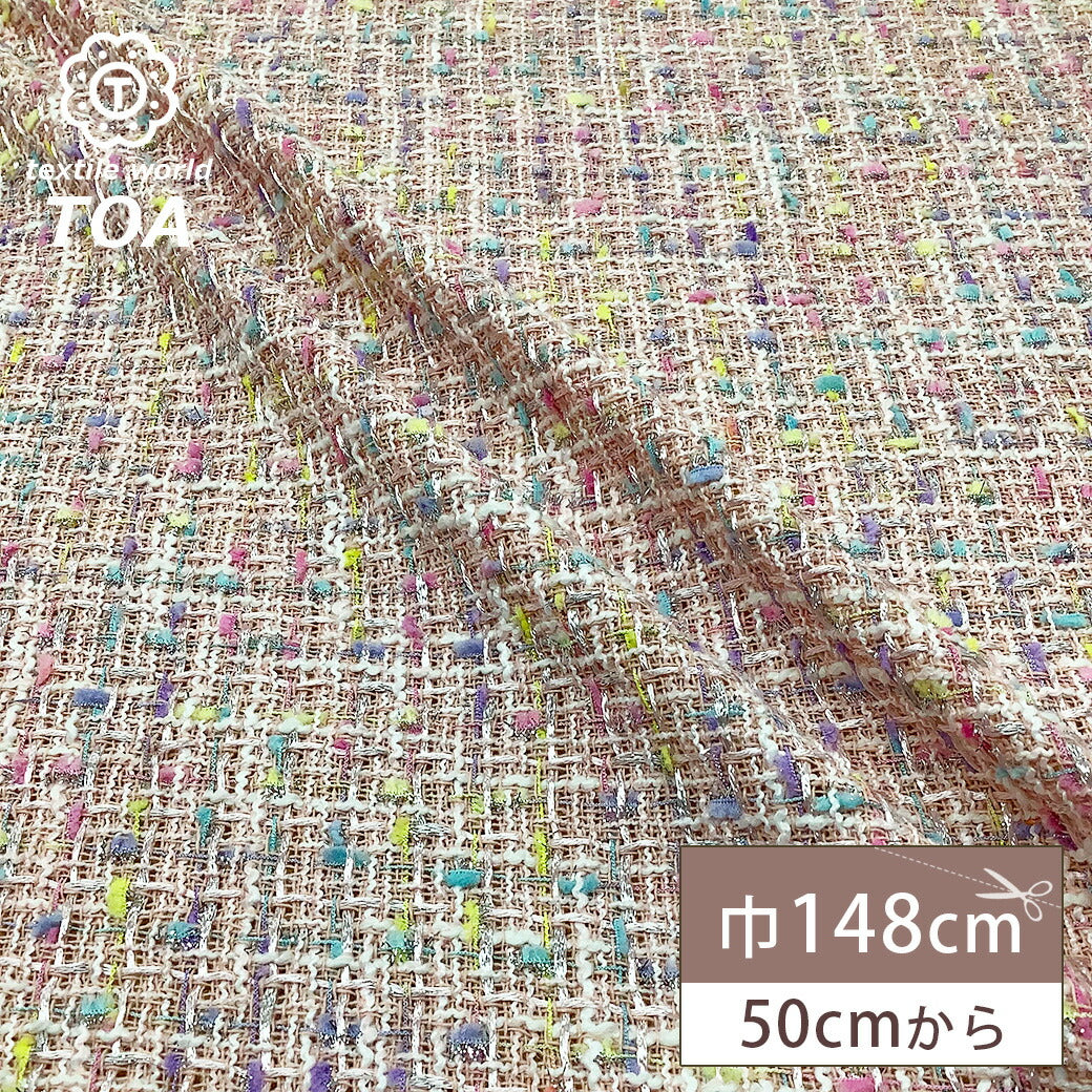 生地 【 ファンシーツイード ピンク 】 ツイード生地 カラフル ファンシーツイード生地 ツィード ポップ ファンシーツィード コットンキャンディ 広幅 幅広 ジャケット コート スーツ ワンピース バッグ インテリア カーテン ハンドメイド 手作り 手芸 Textile world TOA