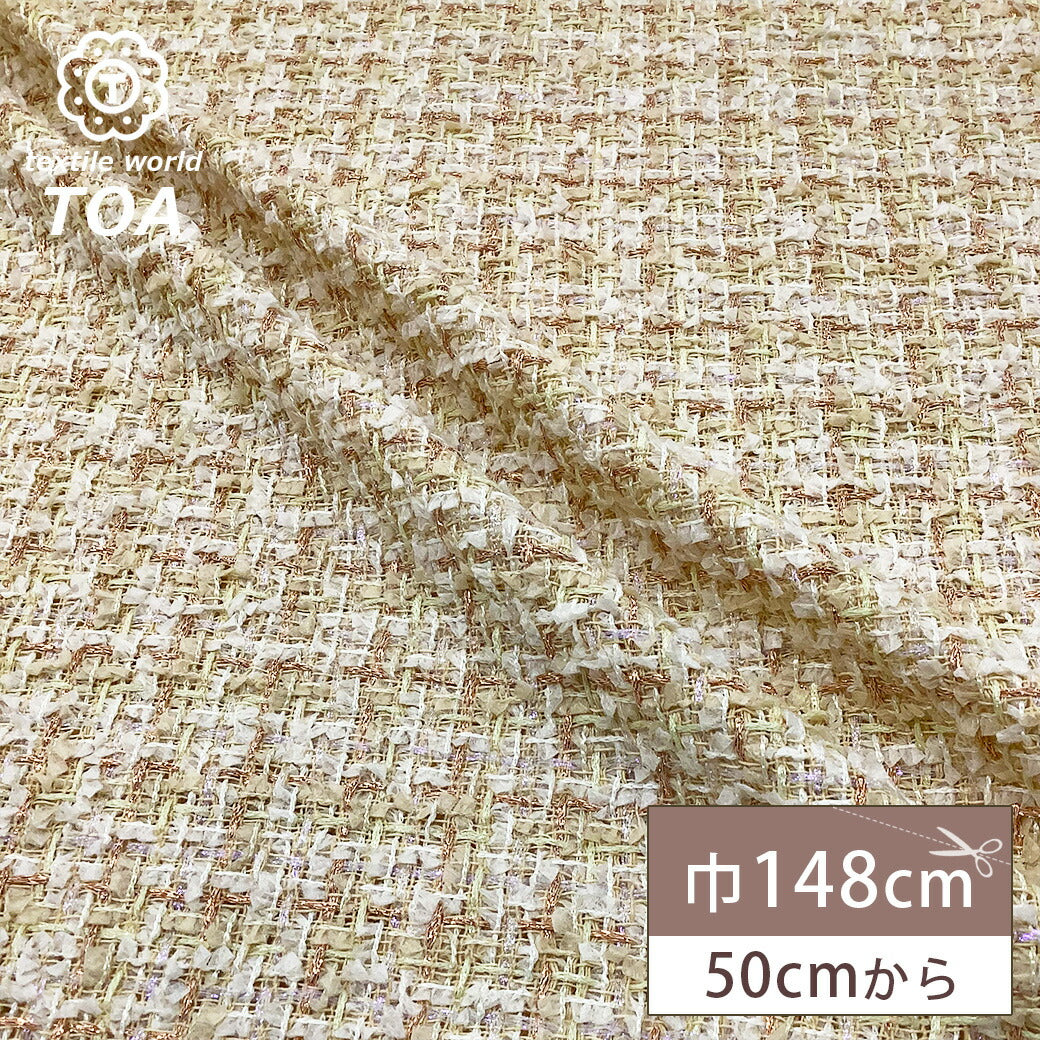 生地 【 ファンシーツイード クリーム 】 ツイード生地 ゴールドラメ入り ファンシーツイード生地 ツィード ファンシーツィード ラメ入りツイード 広幅 幅広 ジャケット コート スーツ ワンピース バッグ インテリア カーテン ハンドメイド 手作り 手芸 Textile world TOA
