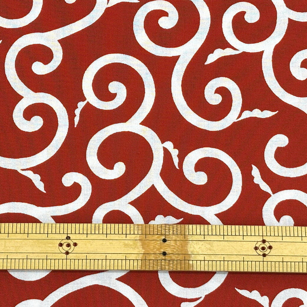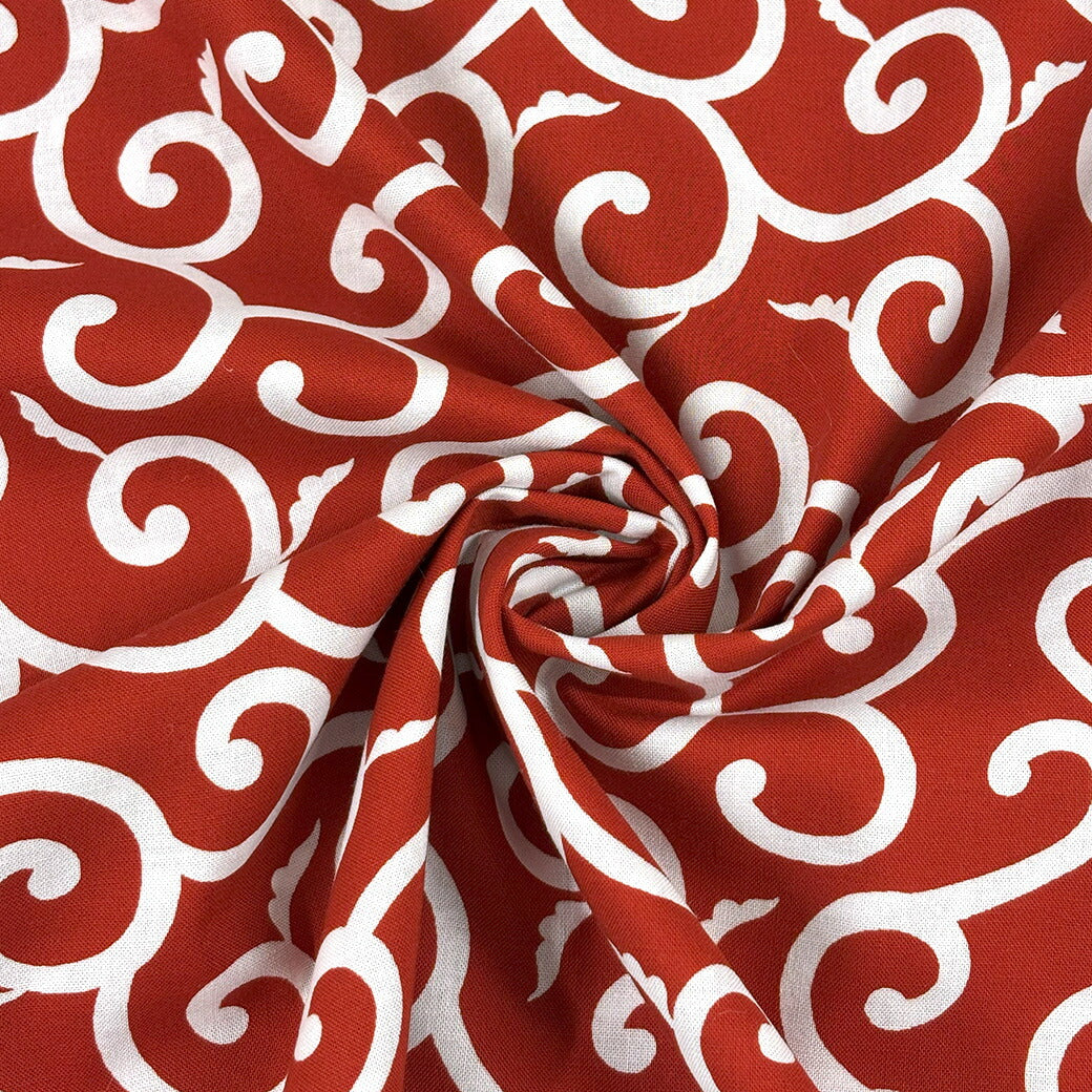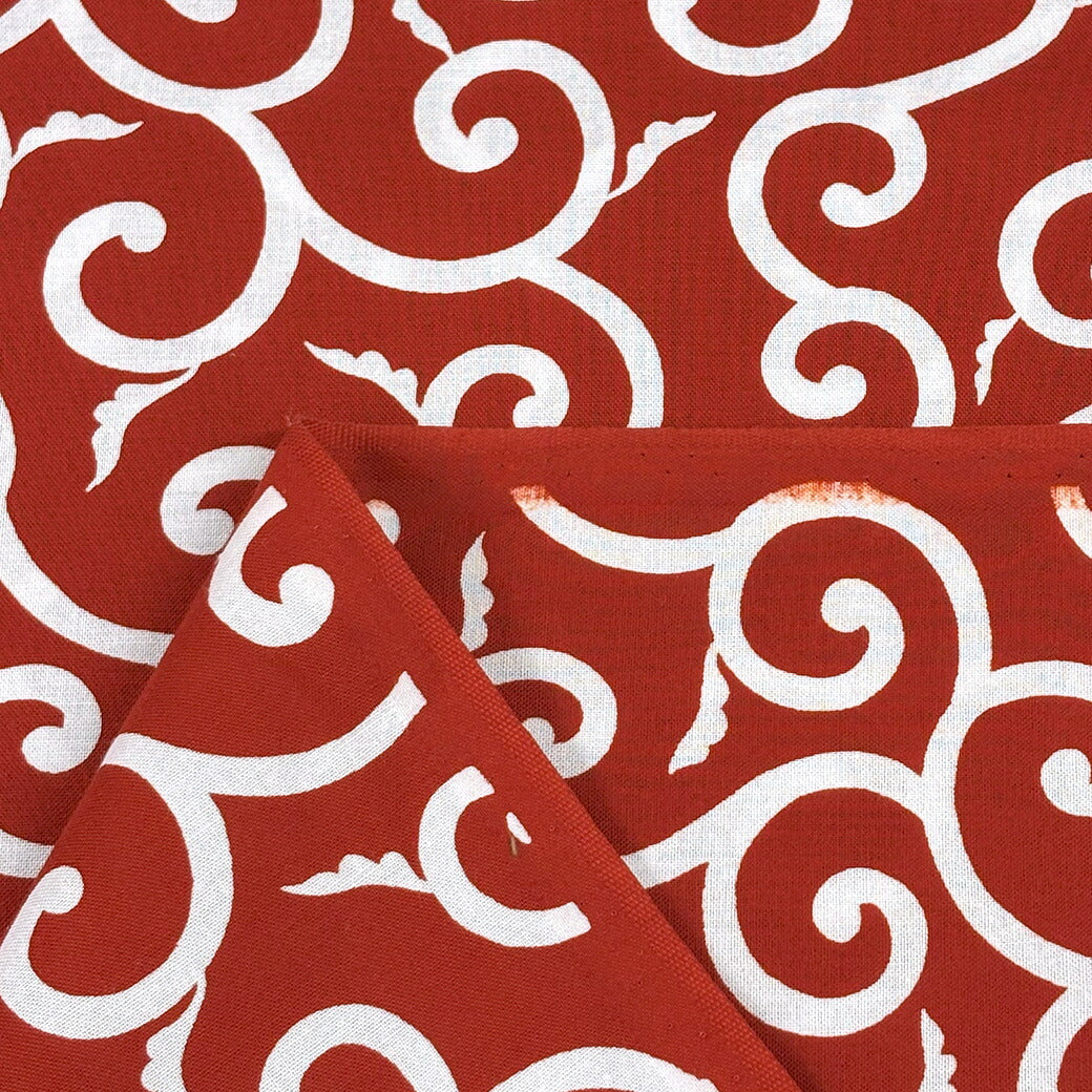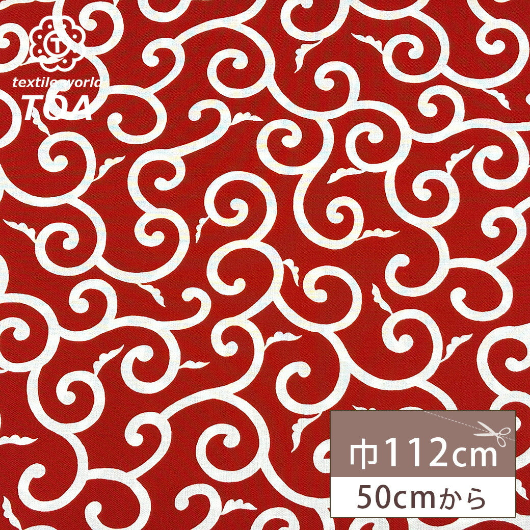 生地 【 唐草 綿プリント 中 赤 】 綿 綿生地 プリント 平織 唐草模様 中柄コットン 綿100% 和柄 和風 和模様 落ち着いた赤 上品 可愛い トートバッグ エコバッグ ポーチ がま口 インテリア のれん エプロン カバーリング テーブルクロス ハンドメイド Textile World TOA