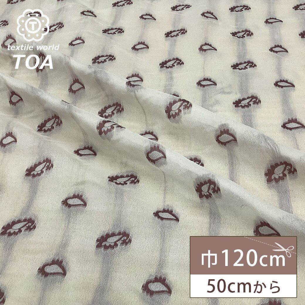 生地 【 ジャガード オーガンジー ペイズリー 】 ジャガード生地 ペイズリー柄 バンダナ柄 オーガンジー 帯 兵児帯 子ども ペイズリー模様 エスニック柄 暖簾 カーテン スカート インテリア きれい 可愛い ベージュ 茶色 洋裁 手芸 ハンドメイド jaguard Textile World Toa
