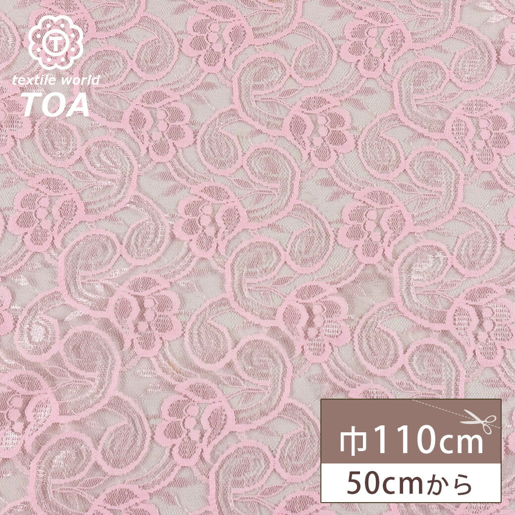 生地 【 ポリエステル レース ピンク 】 レース レース生地 花柄 植物柄 蔦 刺繍 レース刺繍 小花柄 ワンピーズ チュニック スカート カーテン ドレス ブライダル ウェディング コスプレ 半襟 エレガント 可愛い ベール ハンドメイド 手芸 手作り Textile World TOA