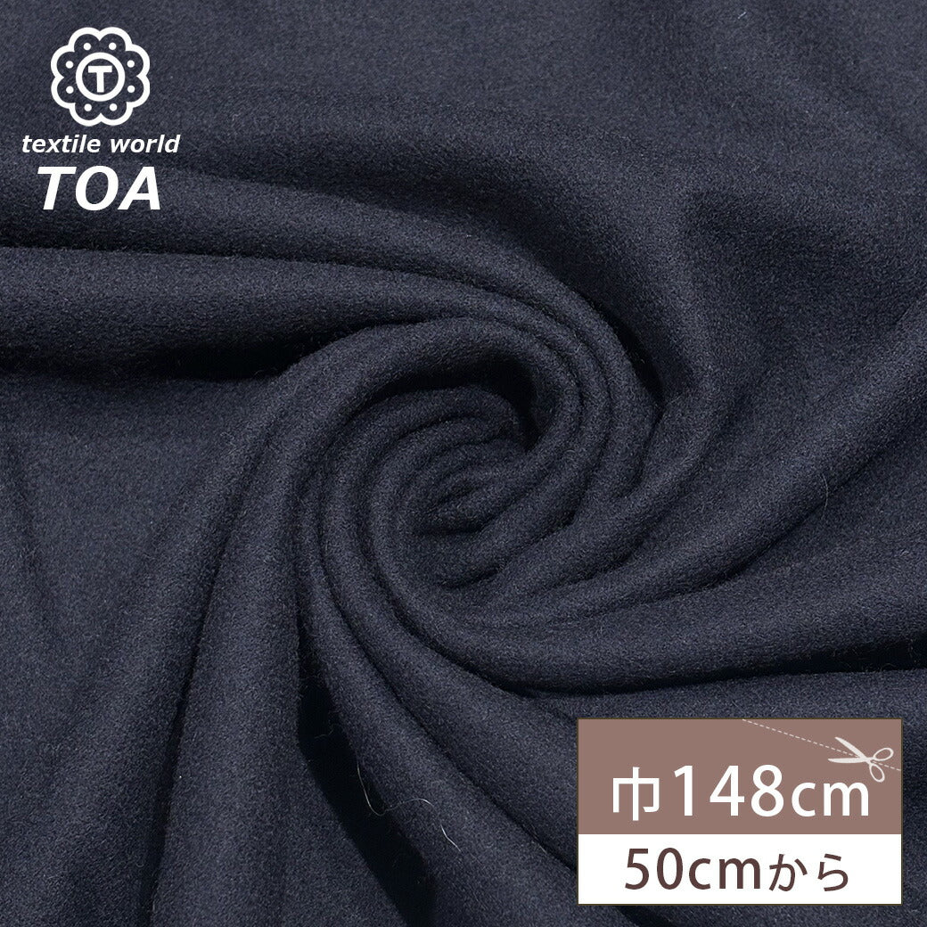 生地 【 モッサ 紺 】 ウール生地 モッサ生地 148cm巾 幅広 無地 起毛 保温性 暖かい 冬生地 秋生地 やわらか スカート パンツ ワンピース ジャケット コート ポンチョ 帽子 カバン ひざ掛け ブランケット 手袋 グローブ wool Textile World TOA