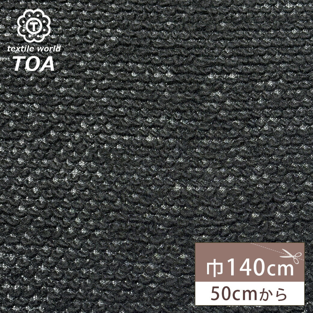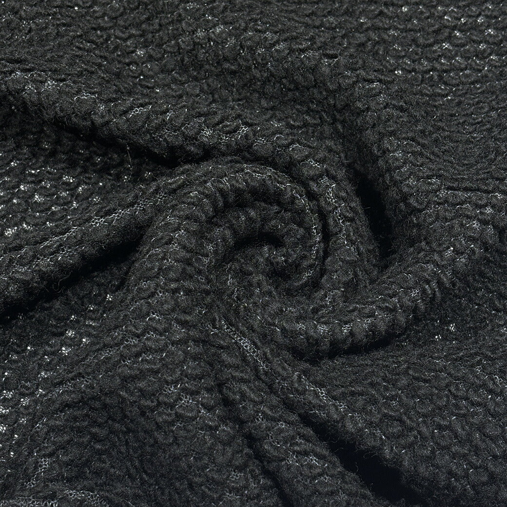 生地 【 ポップコーンニット 黒 】 ウール生地 ニット生地 綿混 140cm巾 ポップコーン風 ポコポコ ぽこぽこ ウール 綿 厚手 無地 秋冬 アウター ベスト ポンチョ インテリア クッションカバー パンツ 子ども服 ベビー服 wool popcorn Textile World TOA