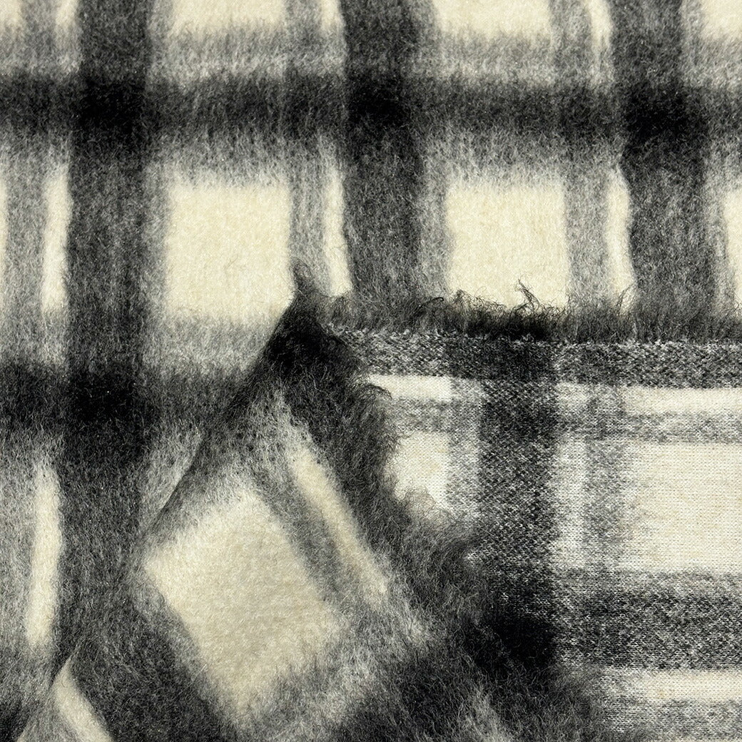 生地 【 マペルチェックシャギー イタリー製 白 】 MAPEL ウール生地 ウール チェック柄 チェック生地 タータンチェック グレンチェック 冬生地 シャギー素材 起毛 羊毛 羊 ふわふわ 暖かい 秋冬 コート スカート ジャケット ブランケット アウター Textile World Toa