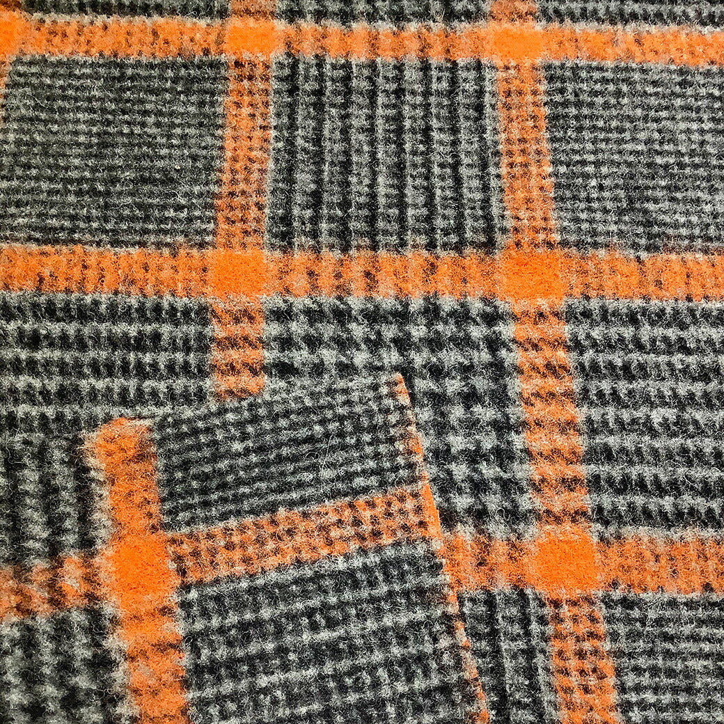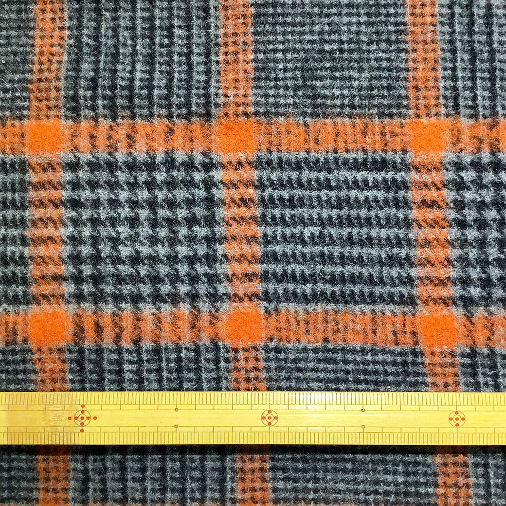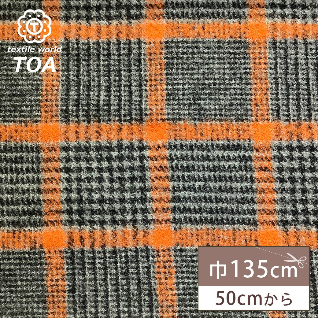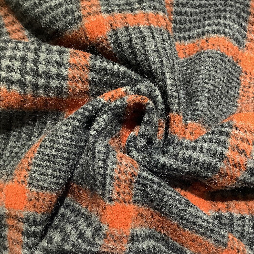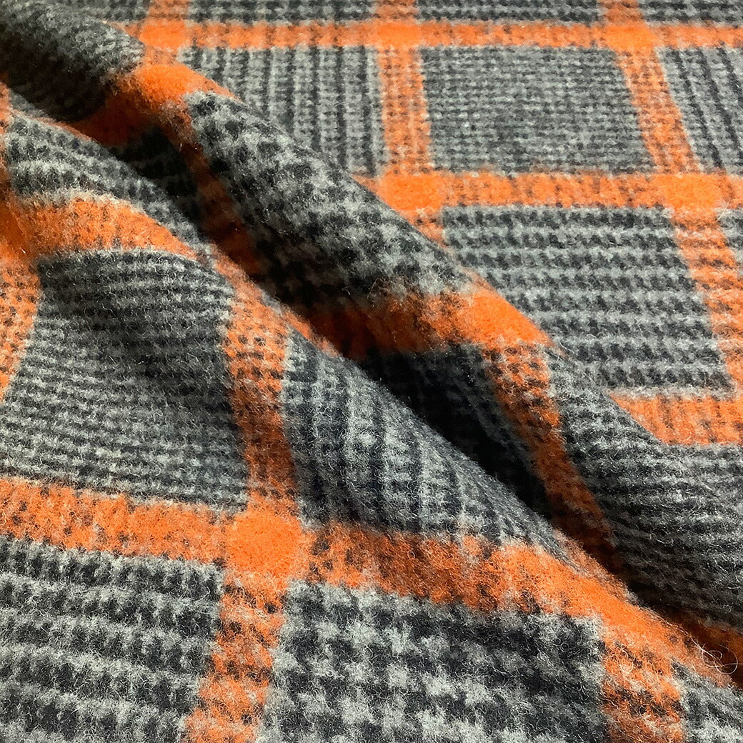 生地 【 モッサ チェック柄 千鳥 オレンジ 】 モッサー モッサー加工 ウール ウール混モッサー 冬生地 千鳥柄 タータンチェック チェック柄 グレンチェック ウール素材 羊 厚手 格子柄 秋冬 コート アウター スカート インテリア コケ 紡毛織物 mosser Textile World TOA