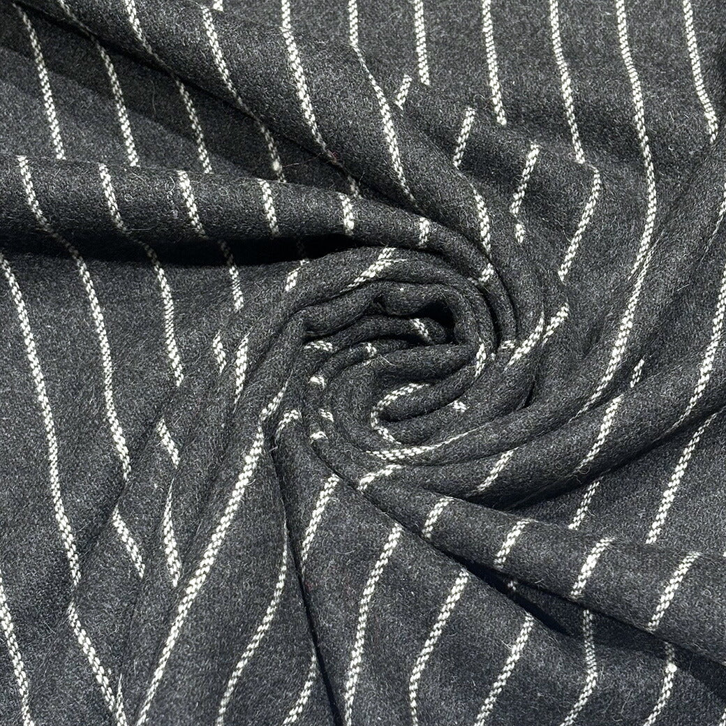 生地 【 ウール ストライプ グレー 】 ウール混 ウール生地 152cm巾 幅広 ストライプ柄 縞々 縦縞 羊毛 暖かい 冬生地 秋生地 厚手 厚い インテリア スカート パンツ ワンピース ひざ掛け ブランケット 手袋 グローブ 湯たんぽカバー Textile World TOA