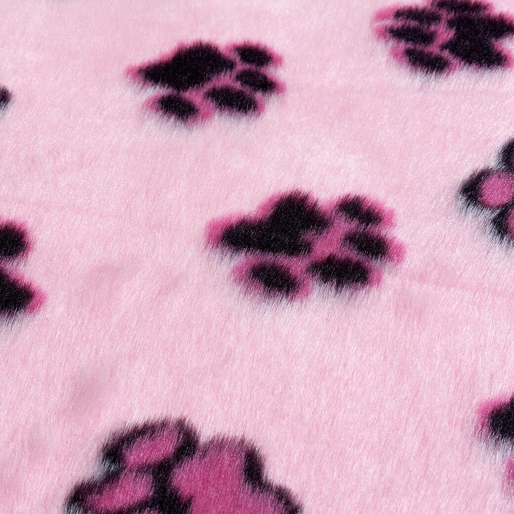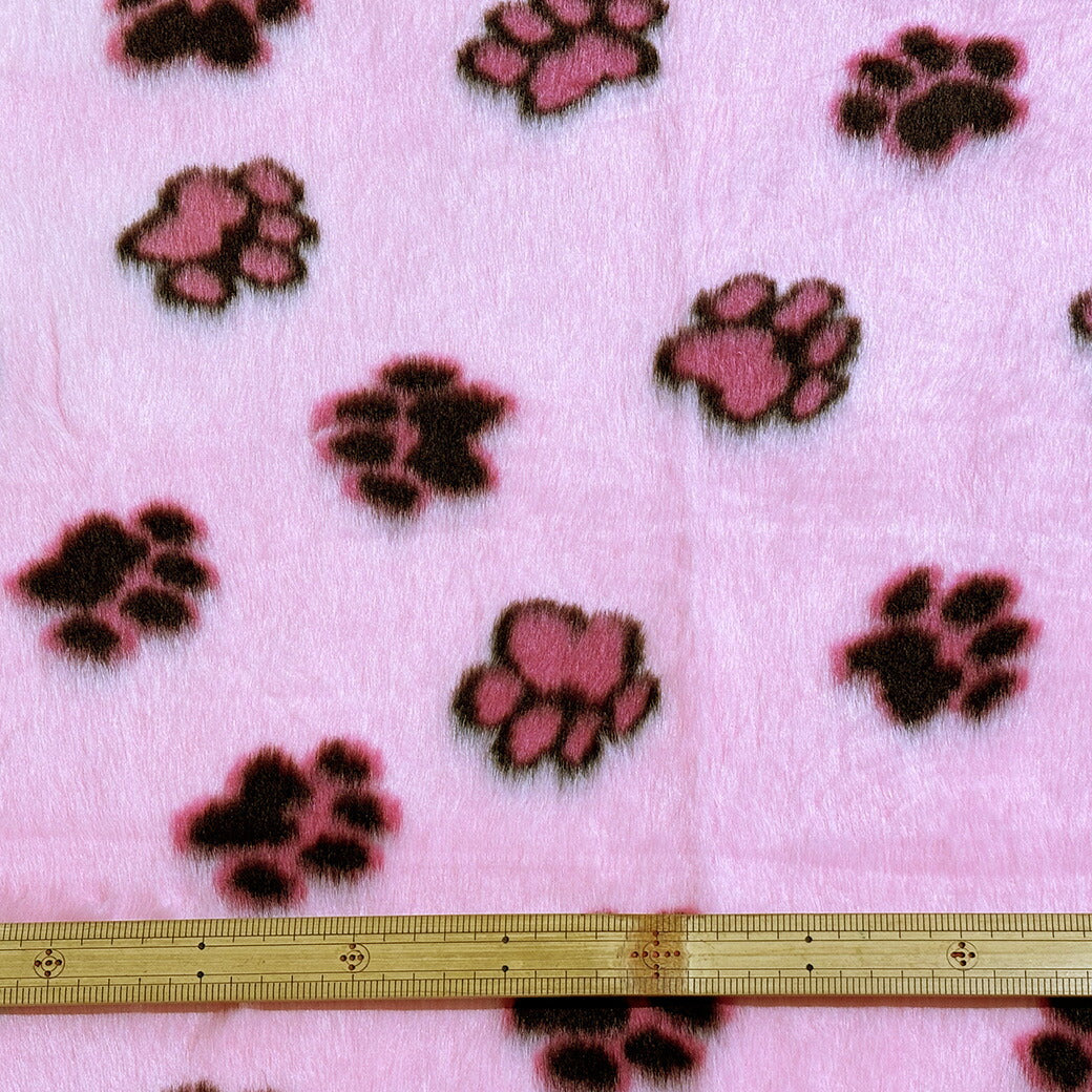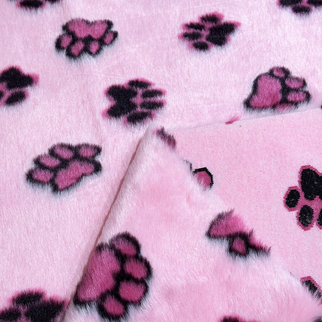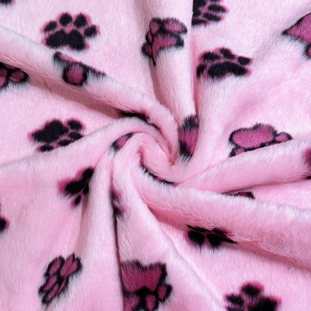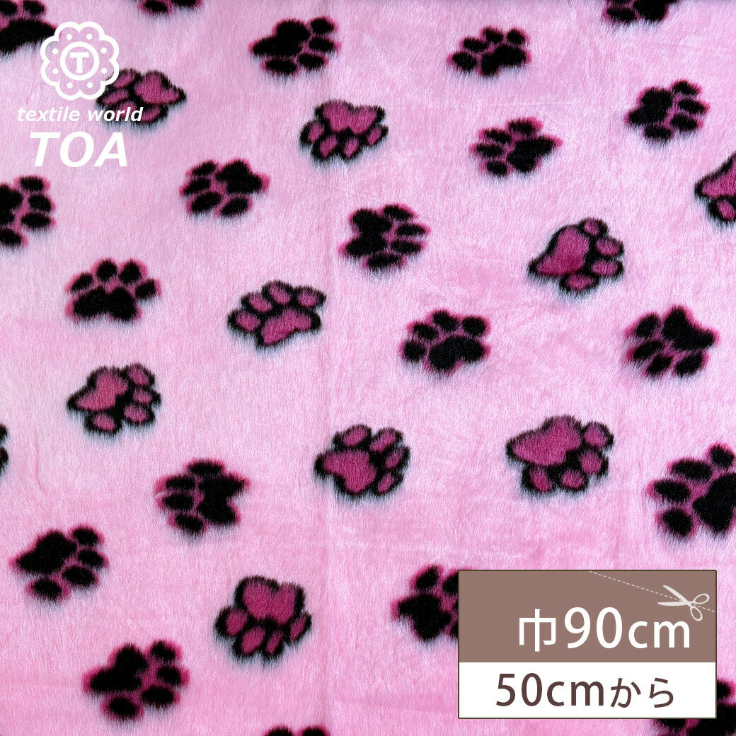 生地 【 わんちゃん足跡ファー ピンク×黒 】 フェイクファー生地 ファー生地 アクリル 起毛 衣装生地 コスプレ 文化祭 ハロウィン衣装 ふわふわ 短毛 ぬいぐるみ 秋冬 冬生地 暖かい 厚手 厚い生地 足跡柄 足あと 動物