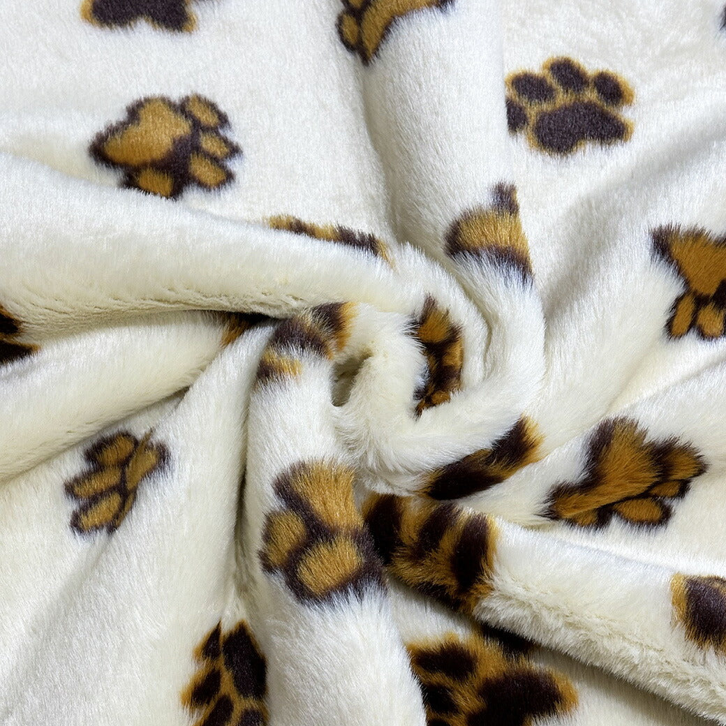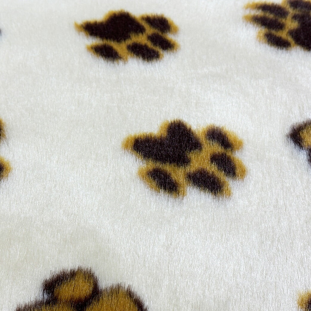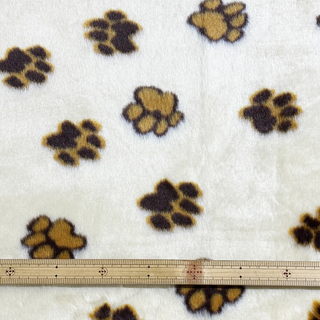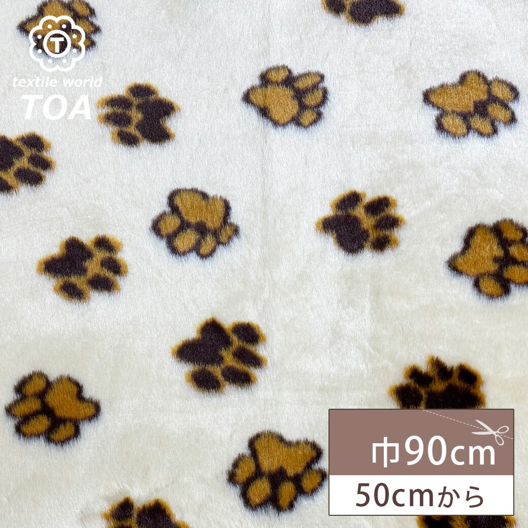 生地 【 わんちゃん足跡ファー 白×茶 】 フェイクファー生地 ファー生地 アクリル 起毛 衣装生地 コスプレ 文化祭 ハロウィン衣装 ふわふわ 短毛 ぬいぐるみ 秋冬 冬生地 暖かい 厚手 厚い生地 足跡柄 足あと 動物の足
