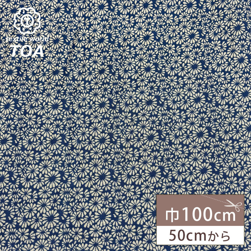 生地【 レトロ小花ジャガード ブルー 】ジャガード生地 ジャガード織り 100cm巾 綿混 ポリエステル 花柄 レトロフラワー 服地 衣装 ワンピース ブラウス スカート ドレス バッグ ポーチ クッションカバー カーテン ハンドメイド 手芸 Textile World TOA